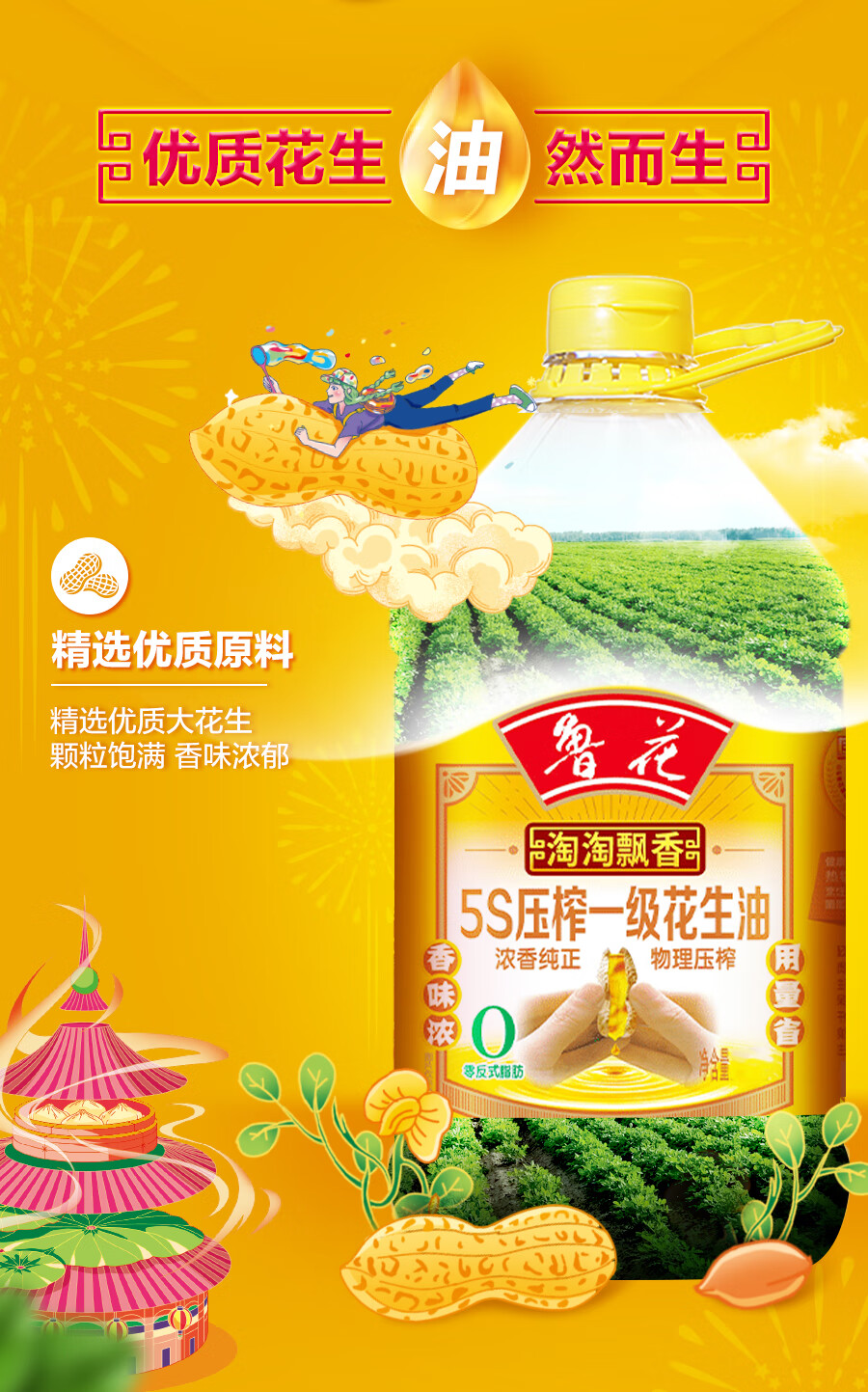 鲁花/十月稻田/金龙鱼淘淘飘香5s压榨田野日记乳玉皇妃壹品稻花香米油组合10kg+5L