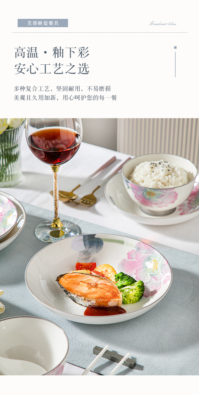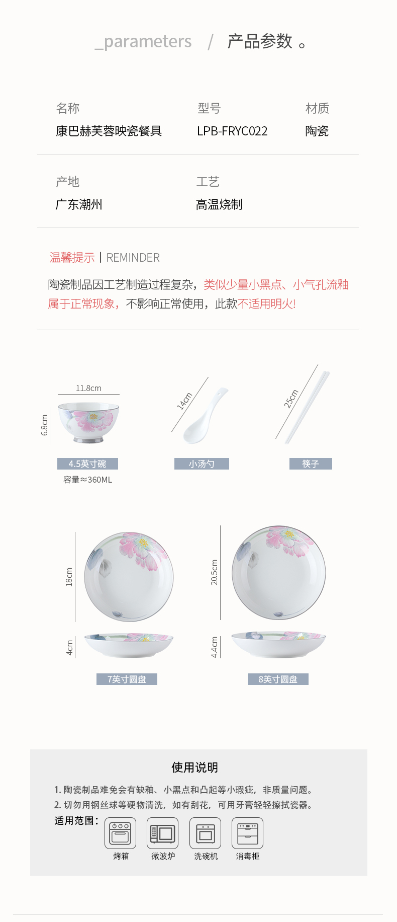 康巴赫芙蓉映瓷餐具22头