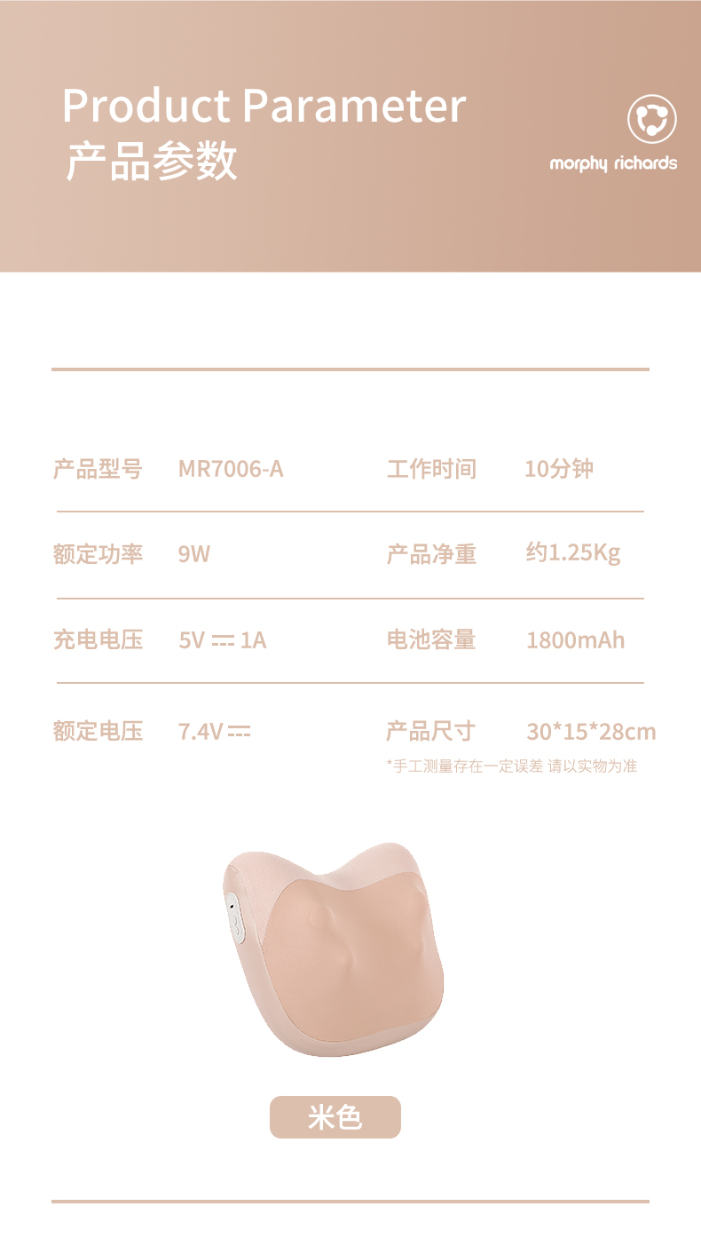 摩飞 按摩靠垫 MR7006-A米色(精灵枕)