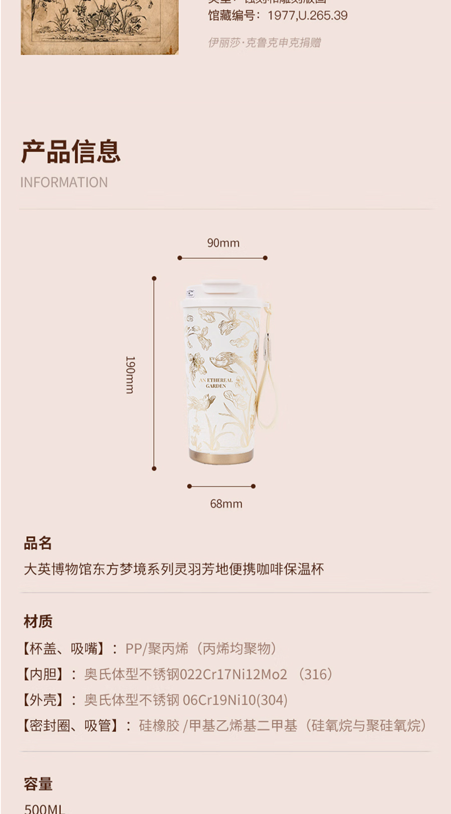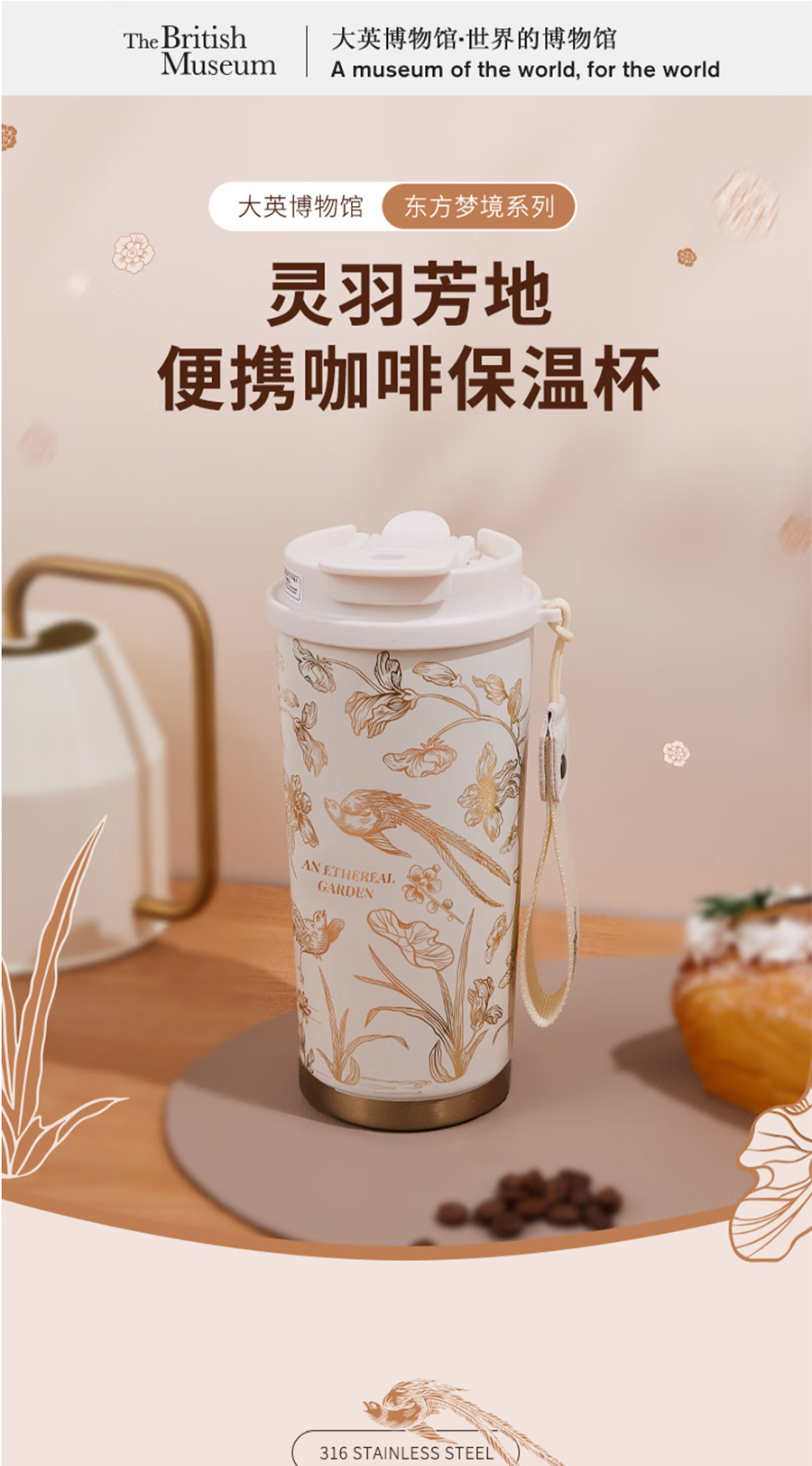 大英博物馆东方梦境系列灵羽芳地便携咖啡保温杯