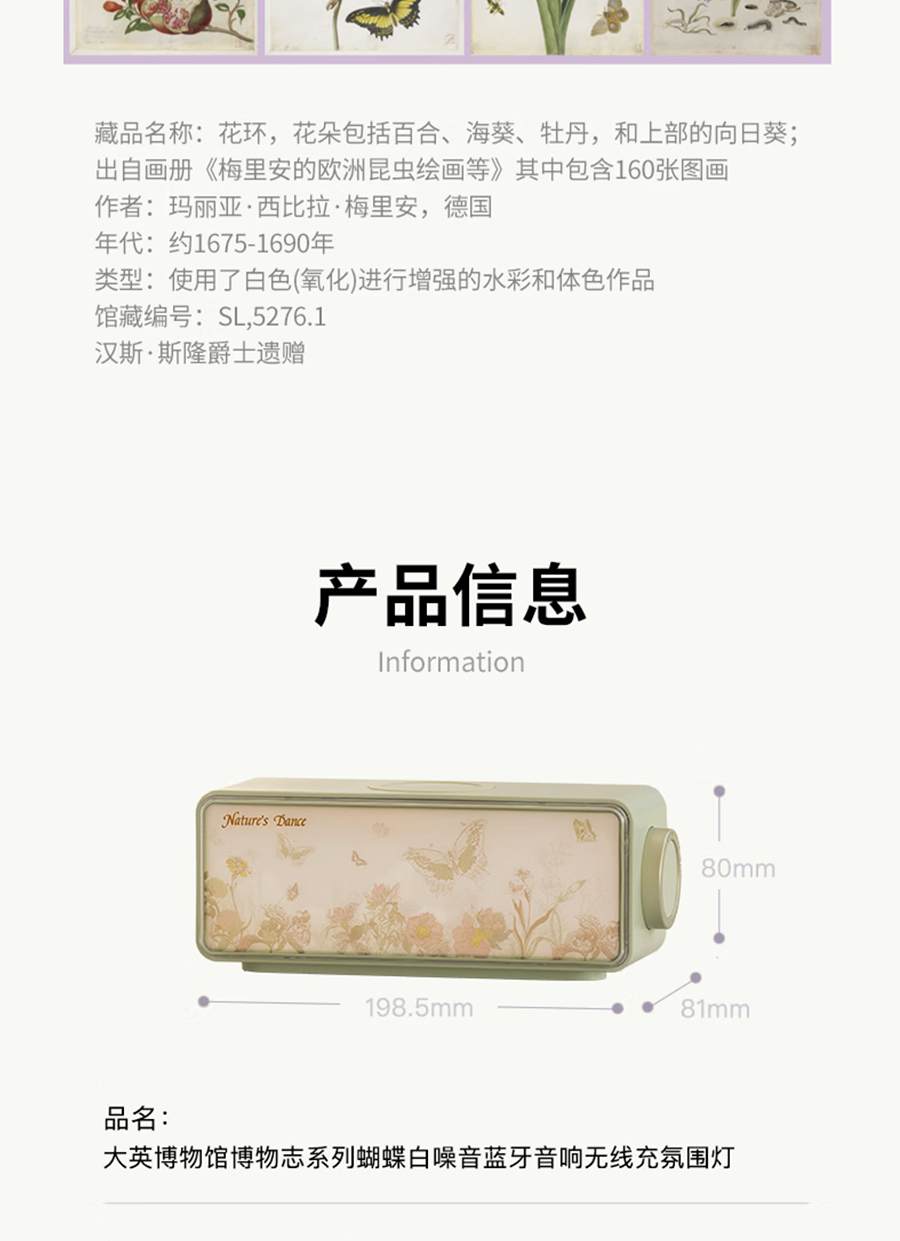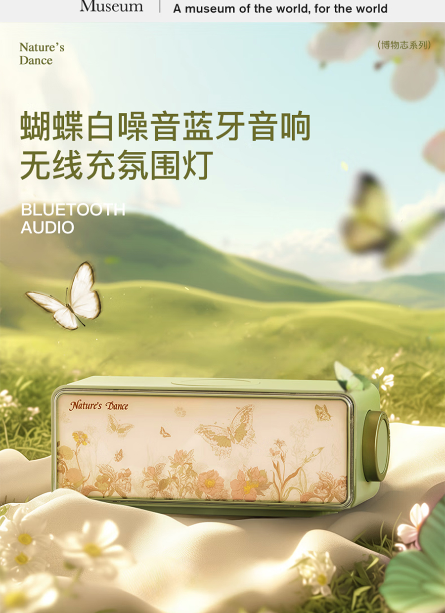 大英博物馆博物志系列蝴蝶白噪音蓝牙音响无线充氛围灯