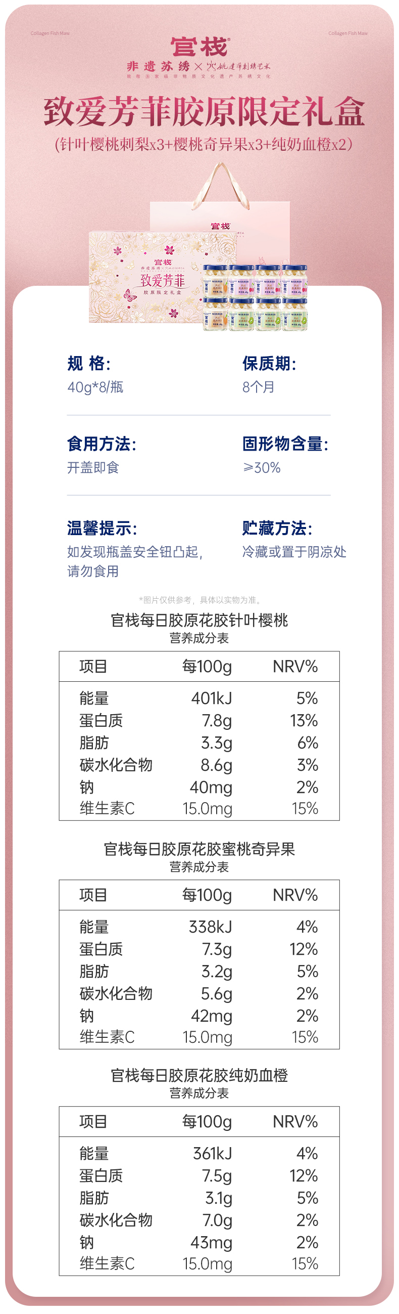 官栈金蝶花胶每日胶原致爱芳菲40gx8 礼盒 320g