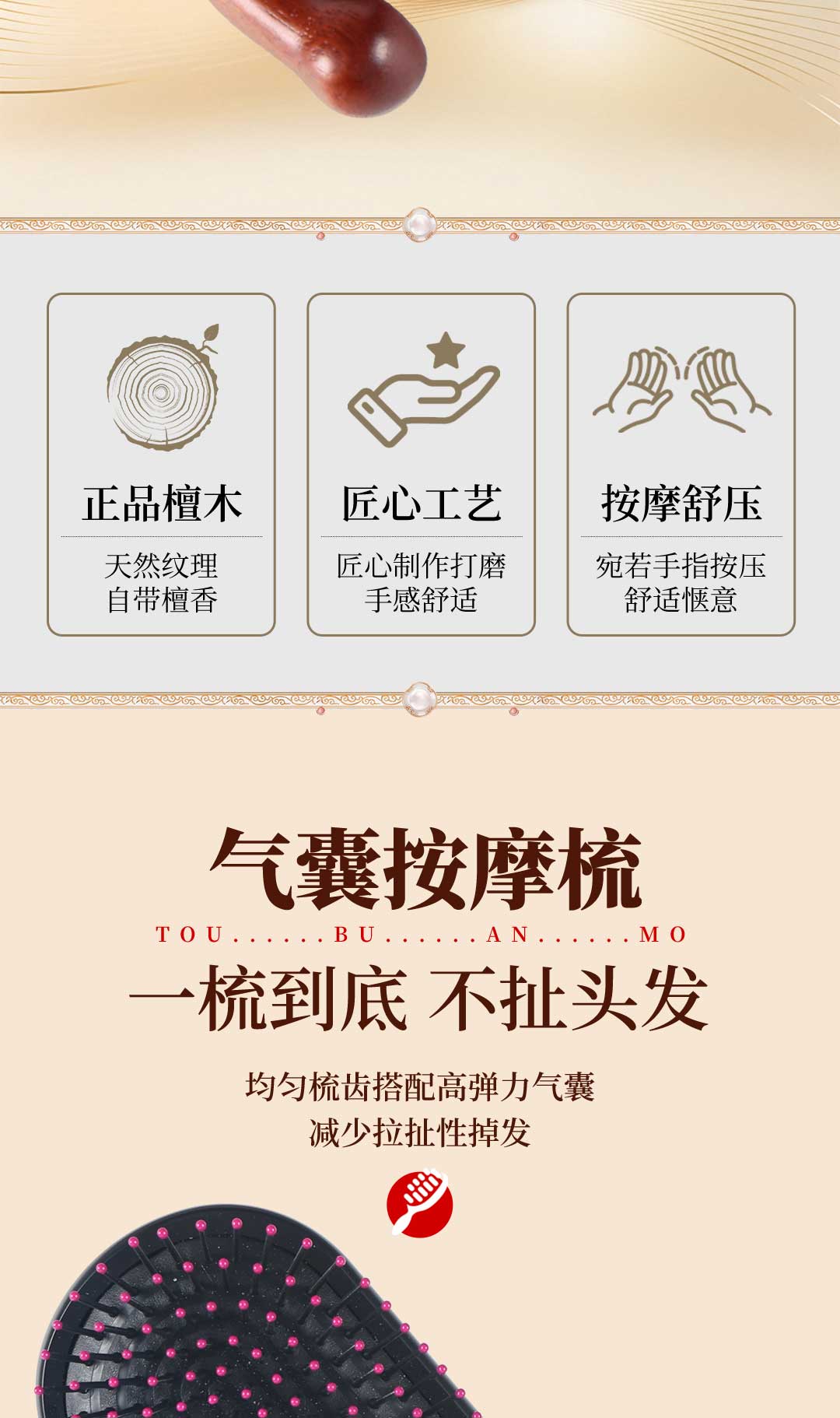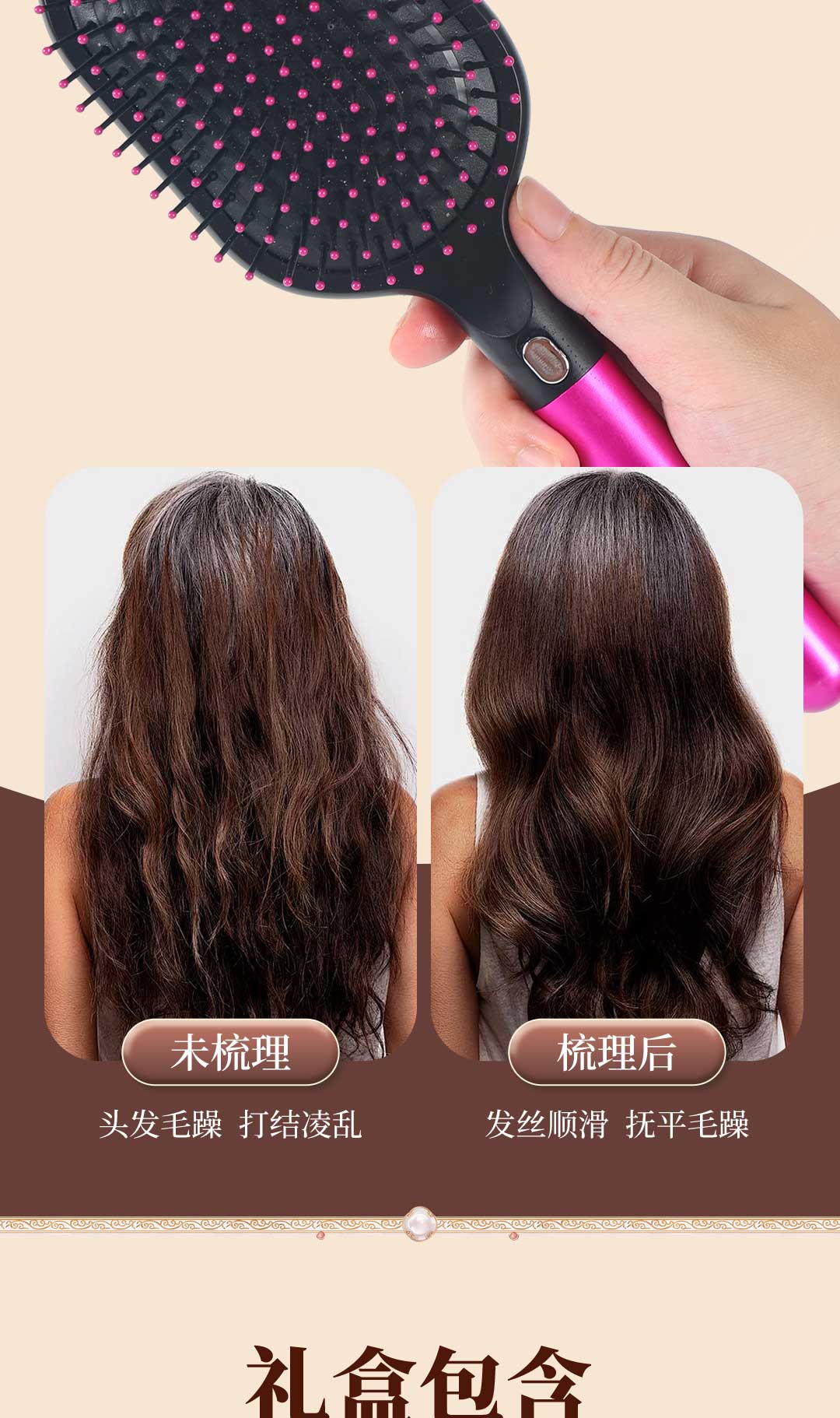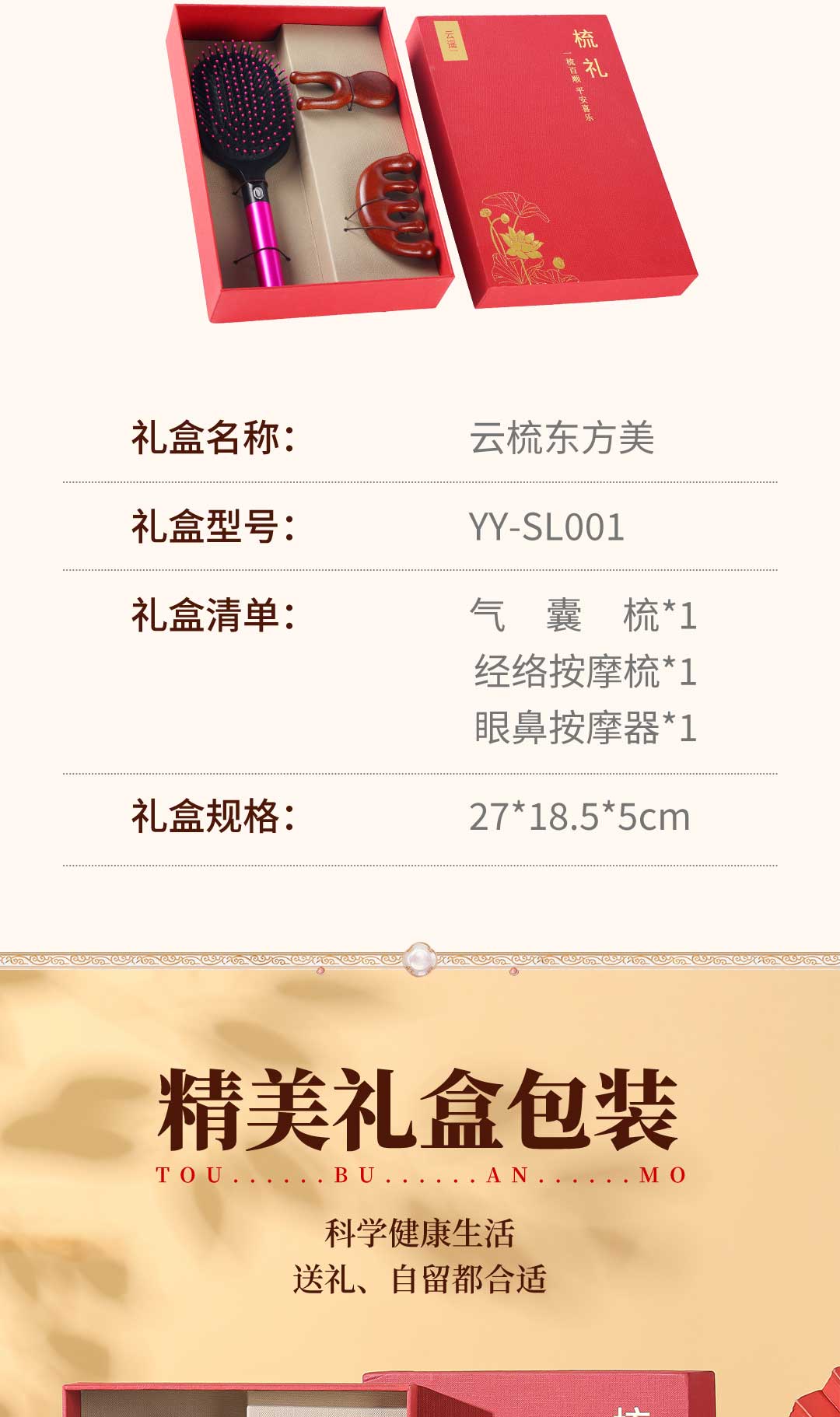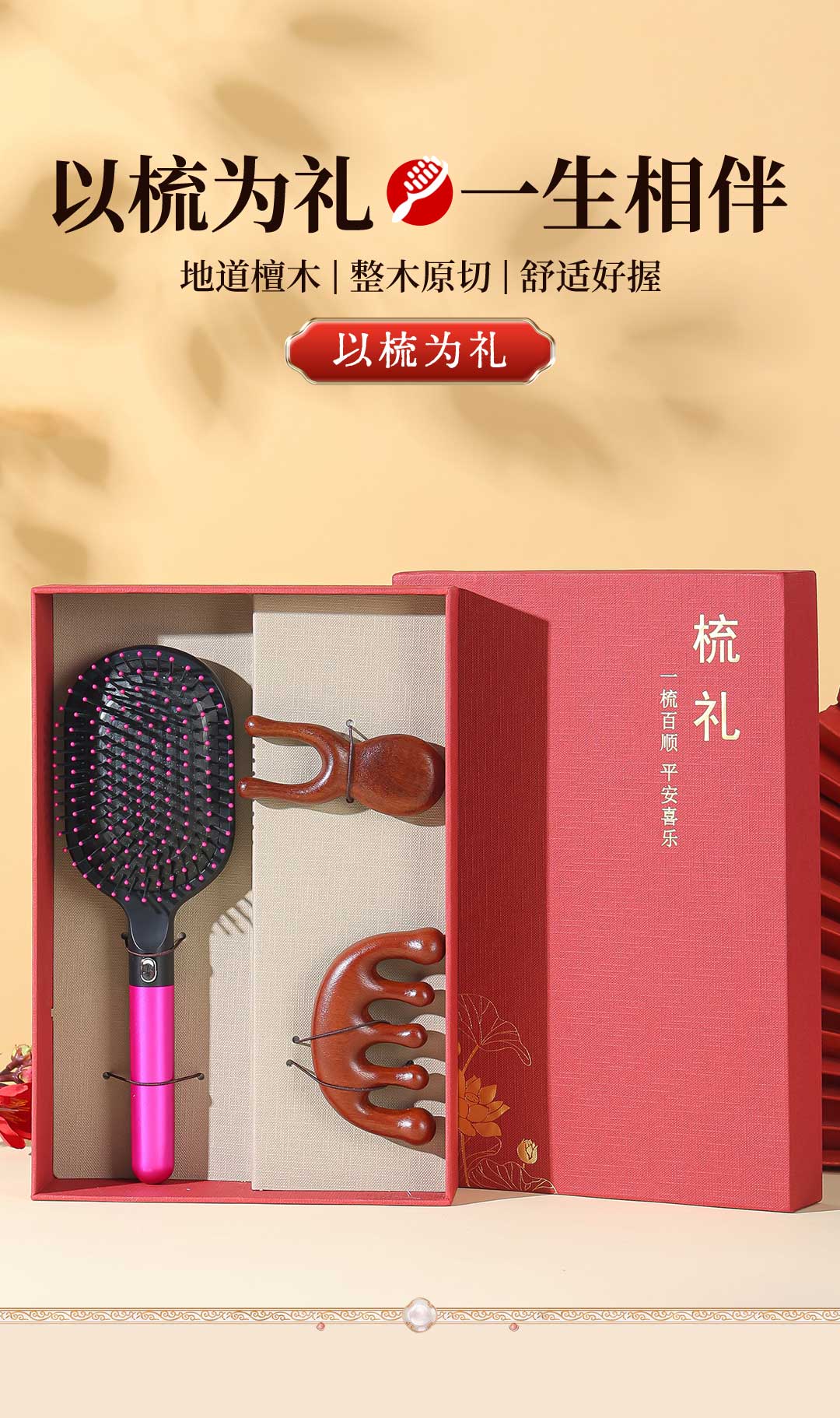 2. 文化寓意:“以梳为礼,一梳百顺”,承载美好祝福,传递“一梳百顺、平安喜乐” 愿景,适配节日、生日等送礼场景,赋予礼物情感温度。