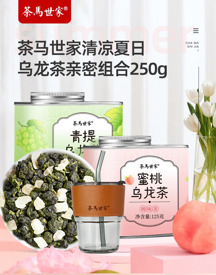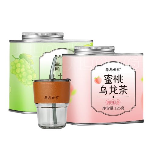 茶马世家蜜桃乌龙125g+青提乌龙组合125g+竹节杯组合