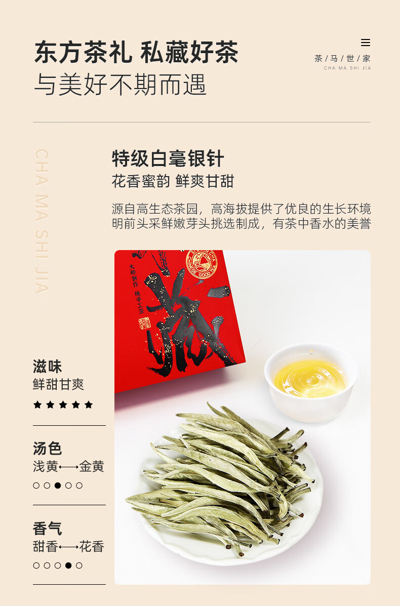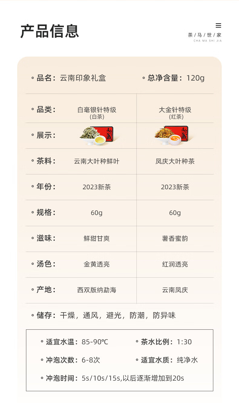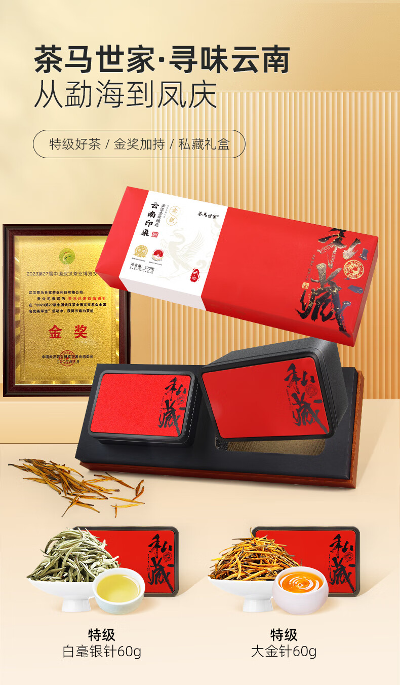 茶马世家云南印象白茶金针礼盒120g(大金针60g+白毫银针60g)
