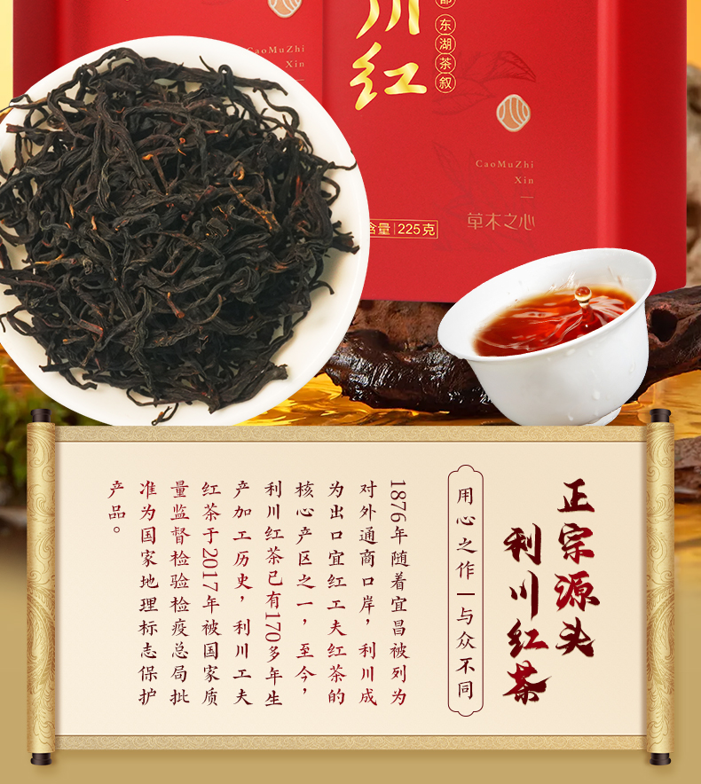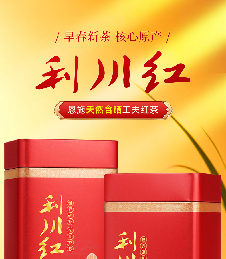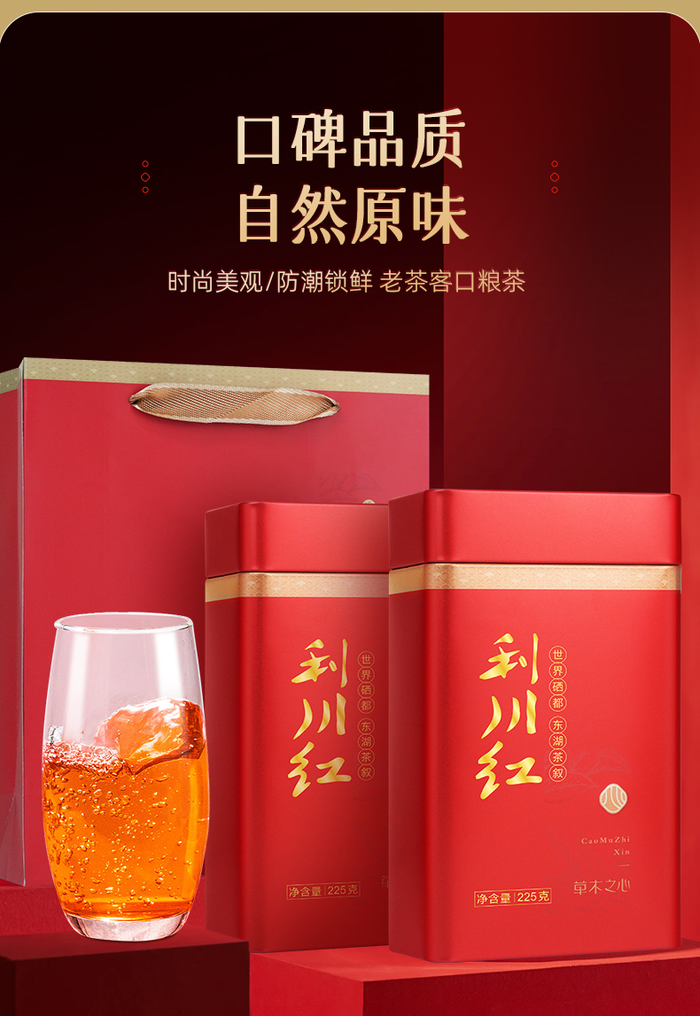 【硒茶有约 ·红运佳人】茶马世家一级利川红红茶草木之心双罐装450g+轻奢皮纹茶具