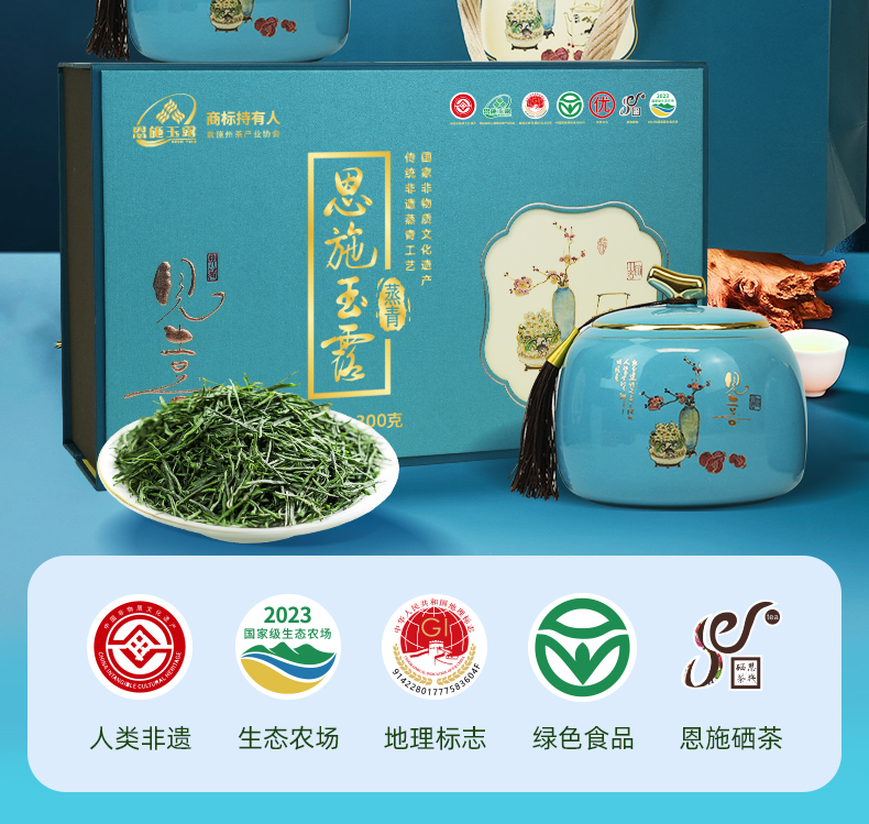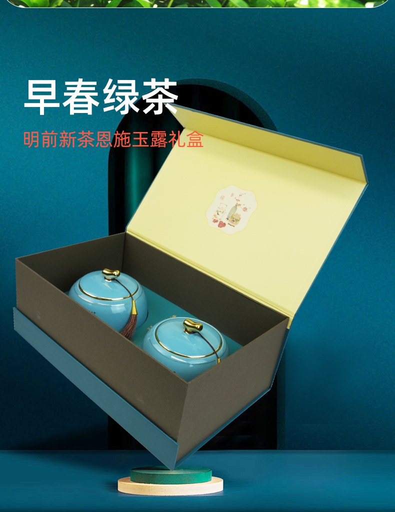 【玉露绽芳华·双喜赠伊人】茶马世家双喜临门一级恩施玉露描金双瓷罐礼盒装3000g(150g*2罐)