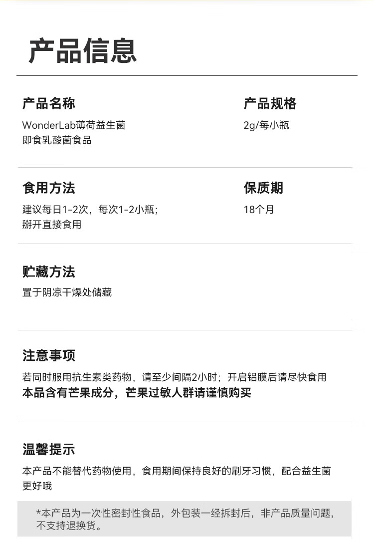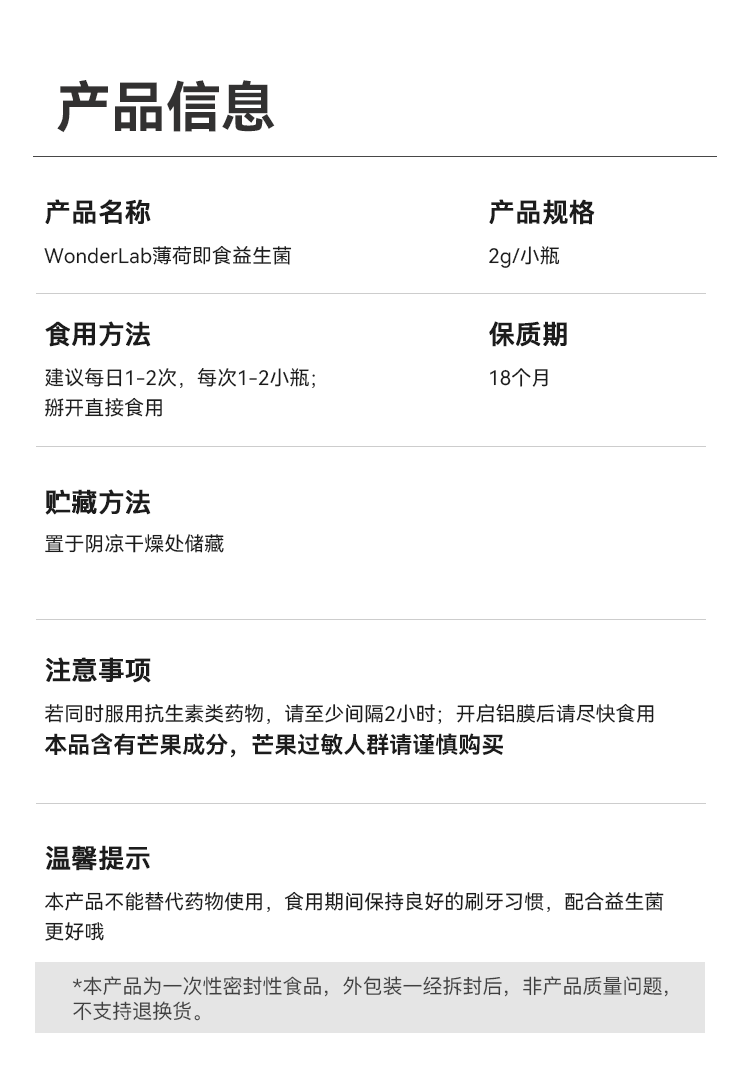 万益蓝WonderLab 口腔即食益生菌30瓶装(2g*30)