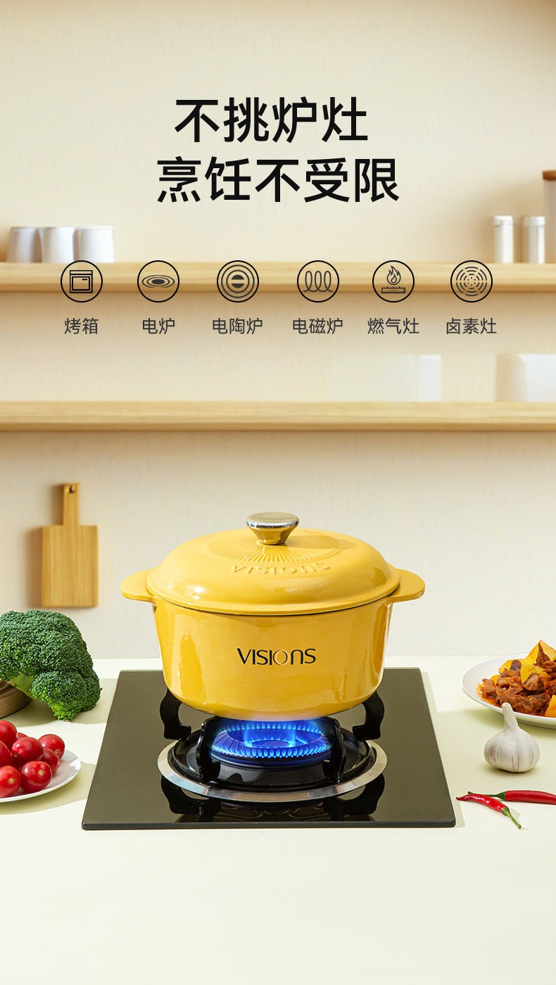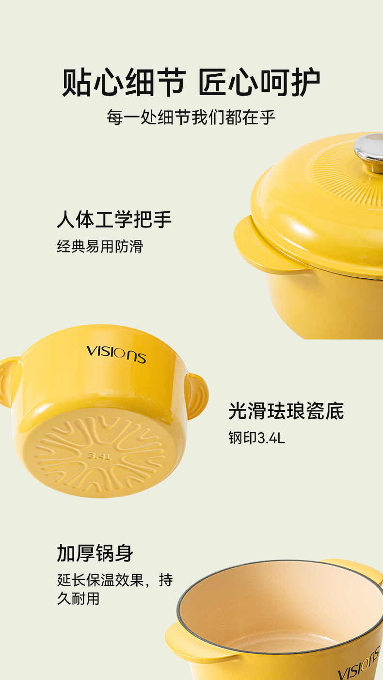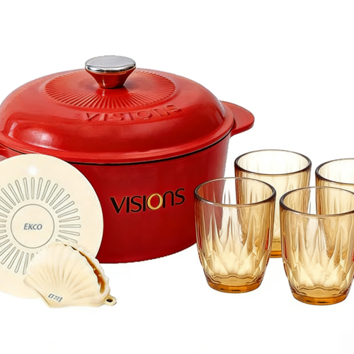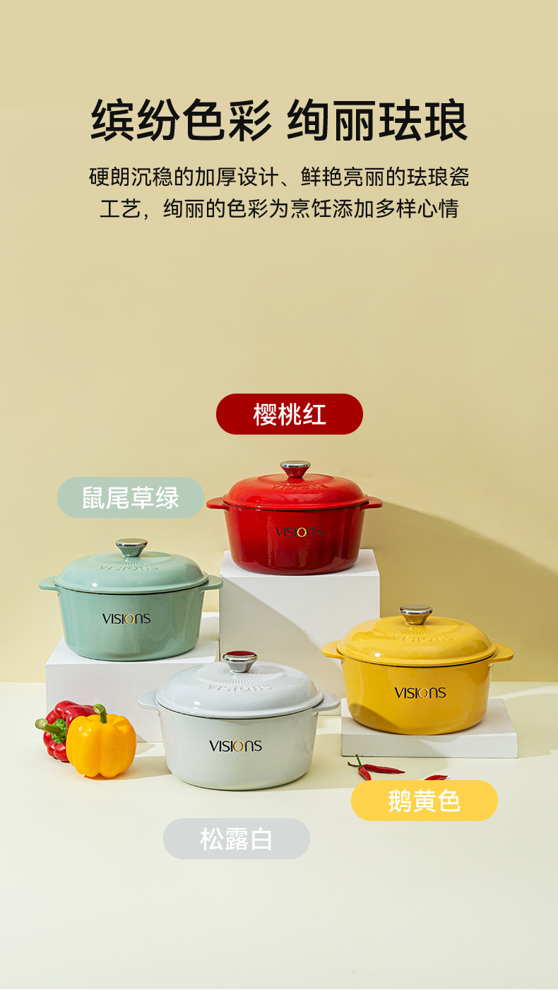 [乐品上海]红色铸铁珐琅锅3.4L+钻石杯四件组