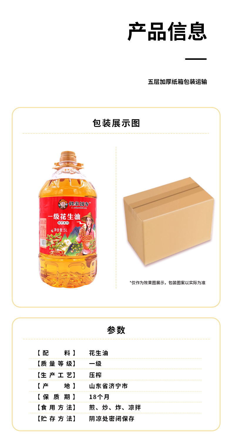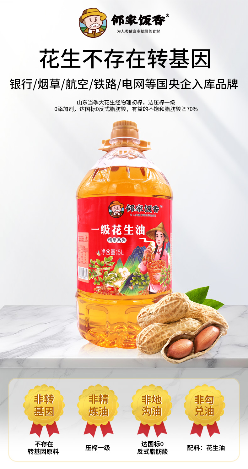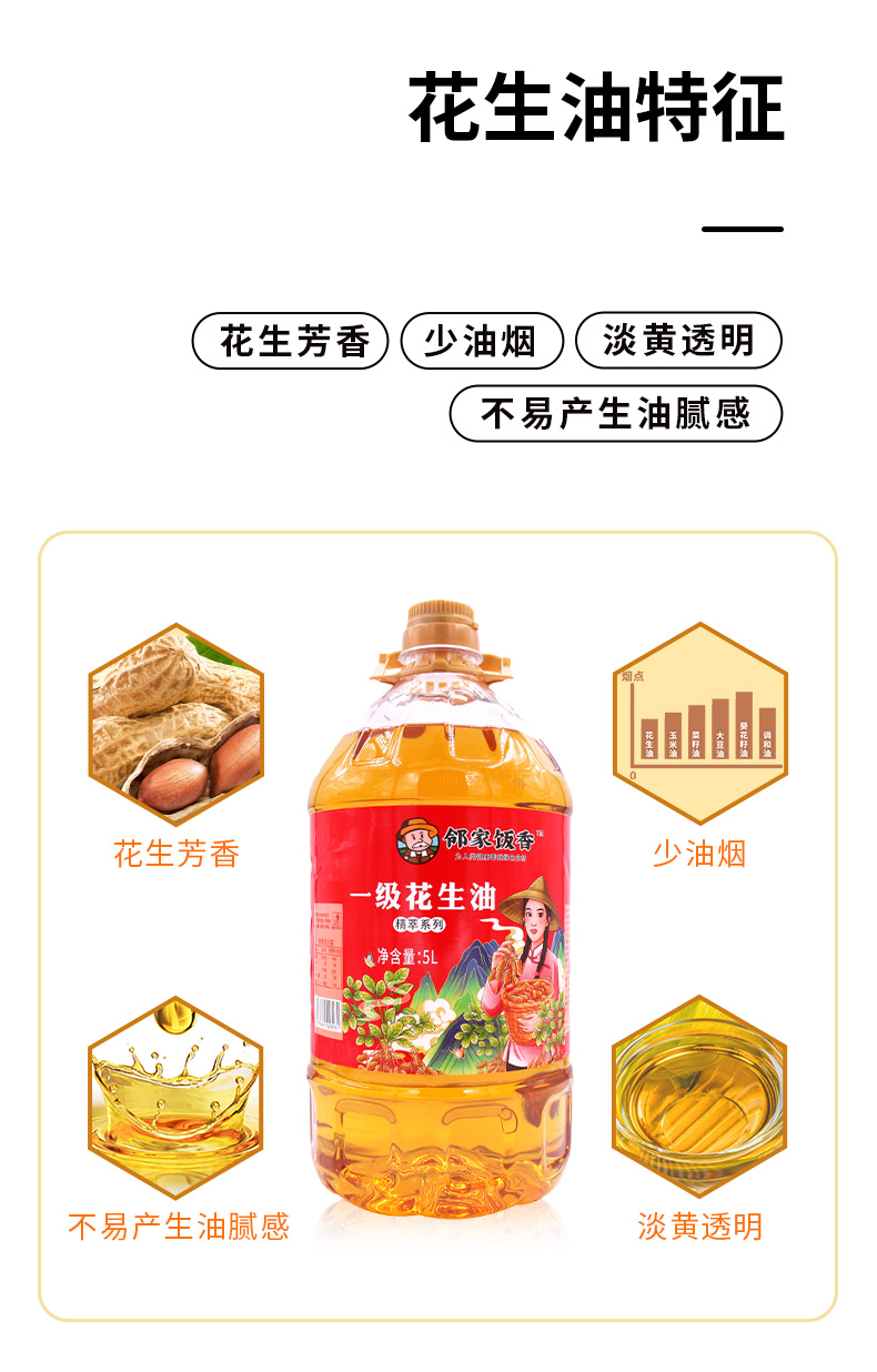 邻家饭香 物理压榨一级浓香花生油 精粹系列 5L/桶 YF186