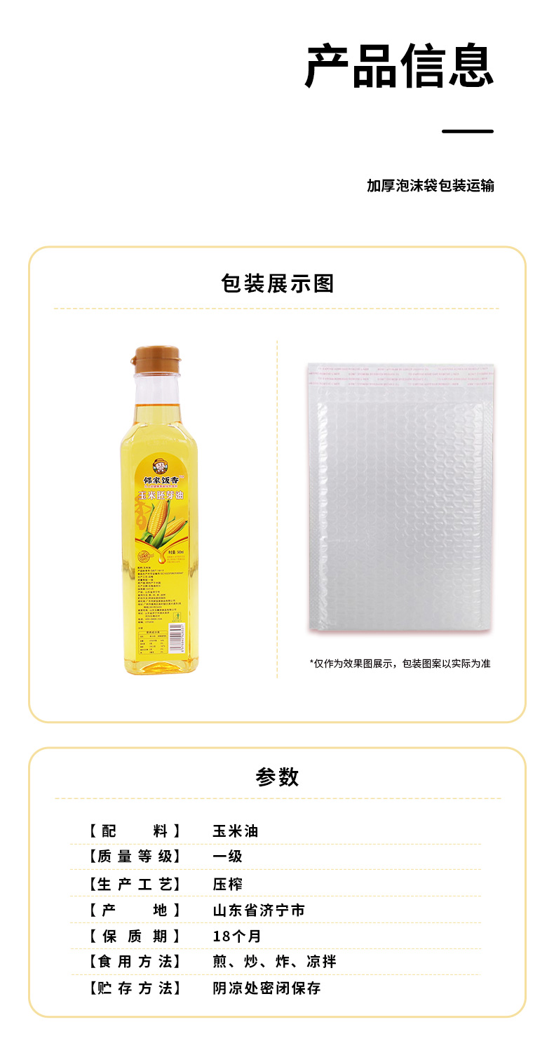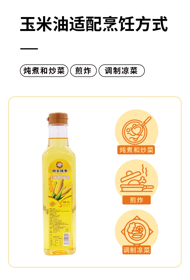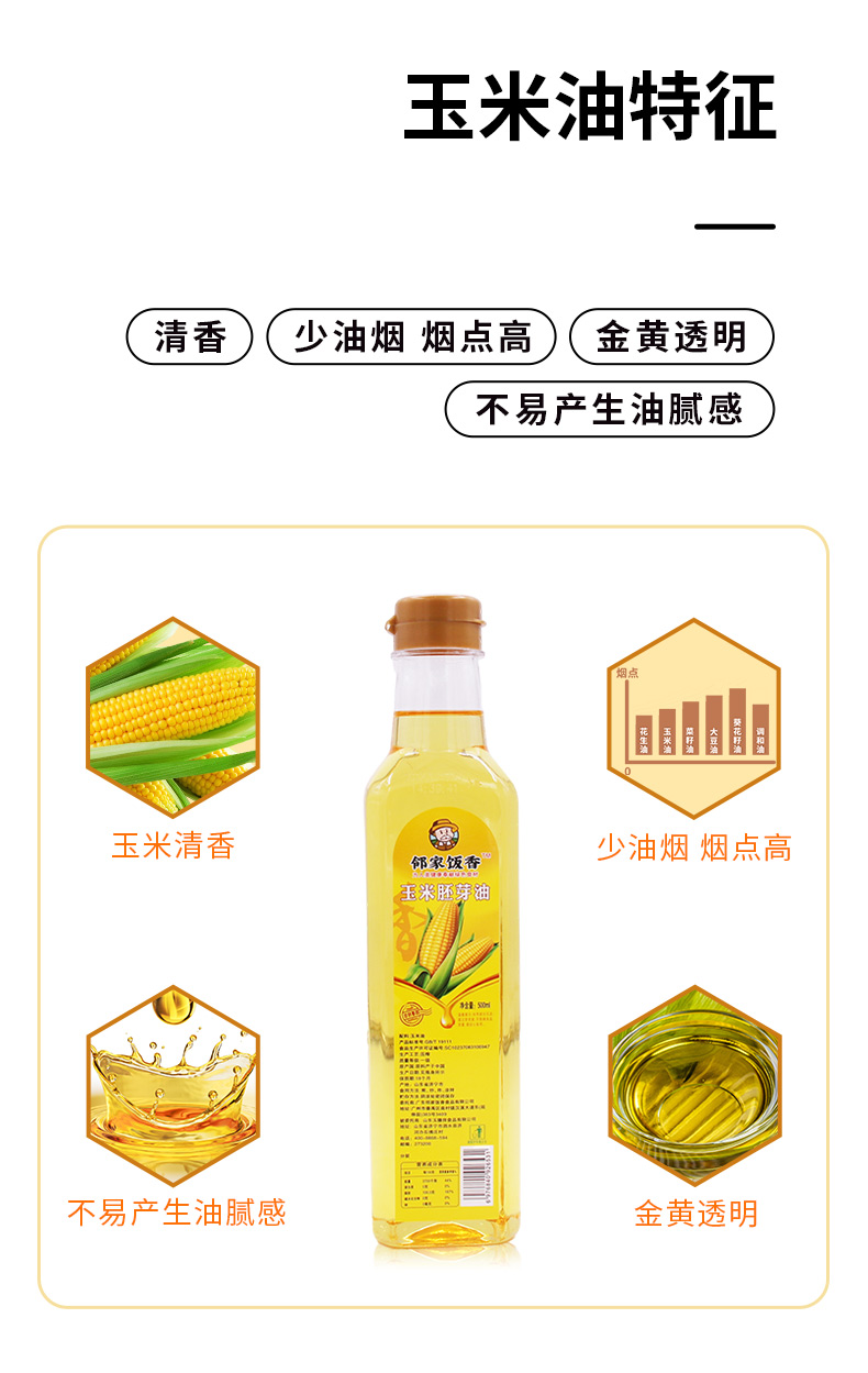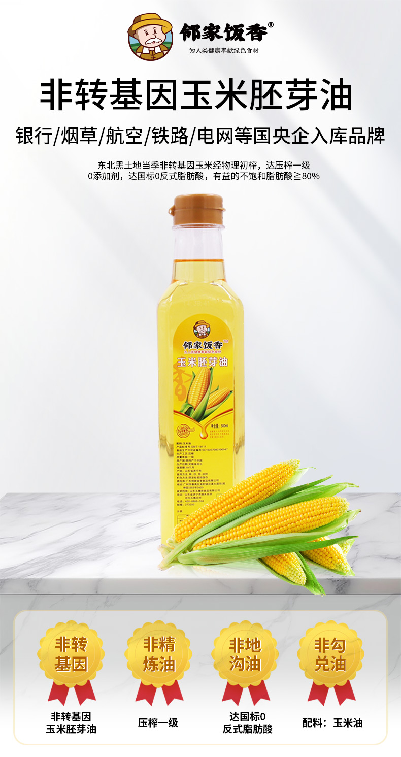 邻家饭香 非转基因 物理压榨一级玉米胚芽油 500ml/瓶 LJFX34