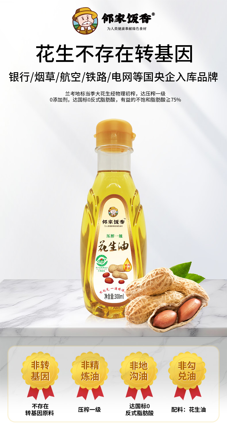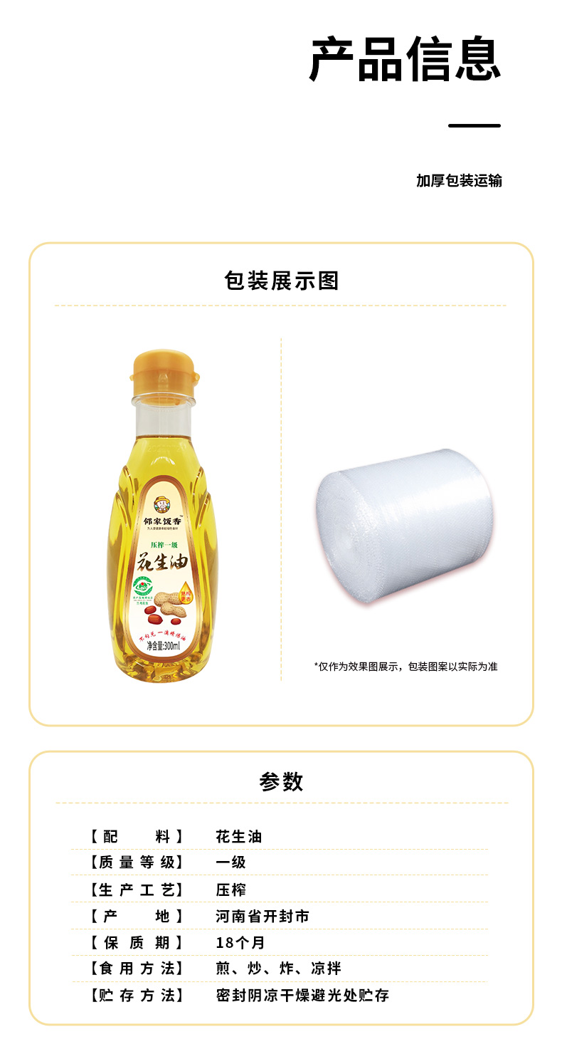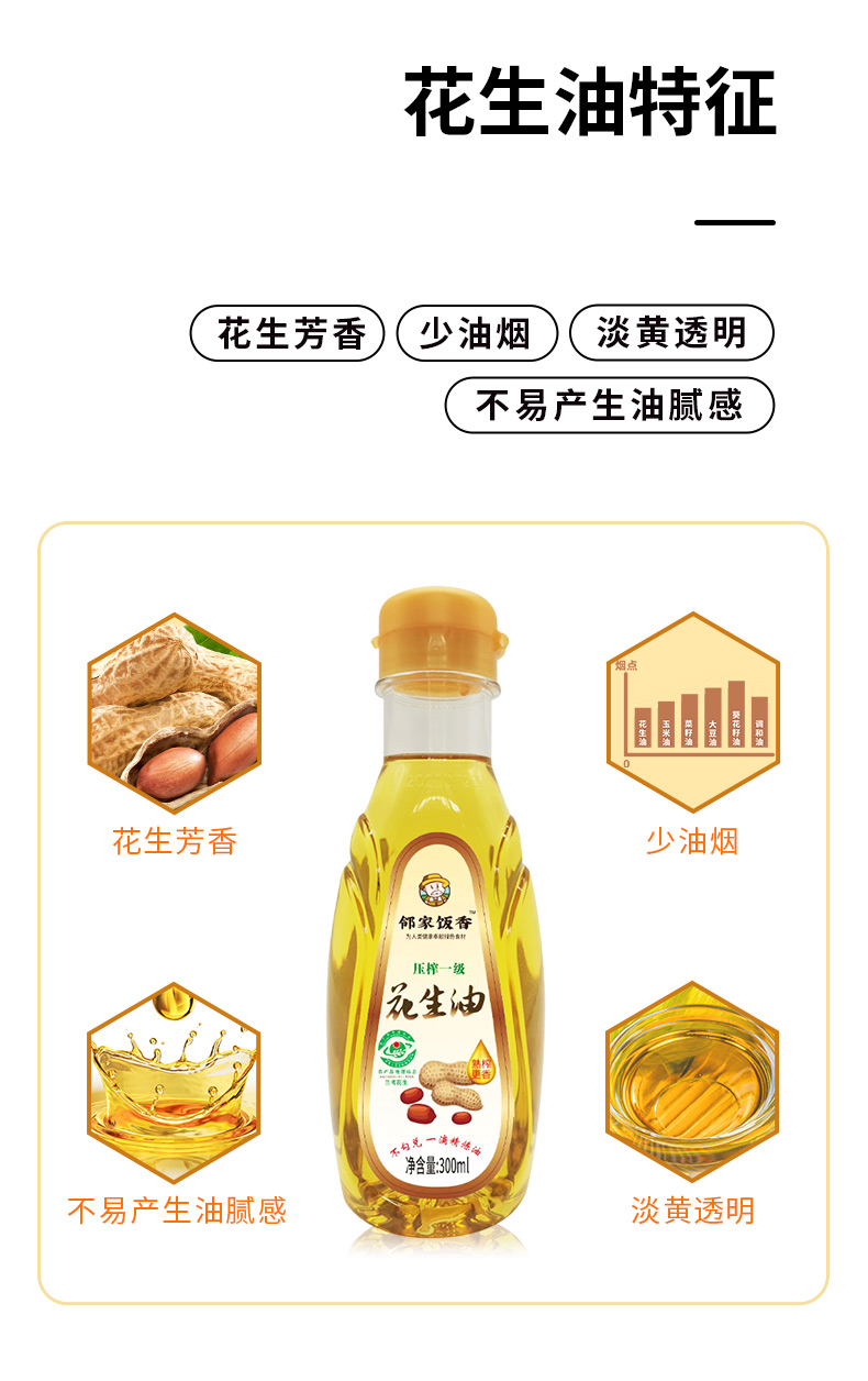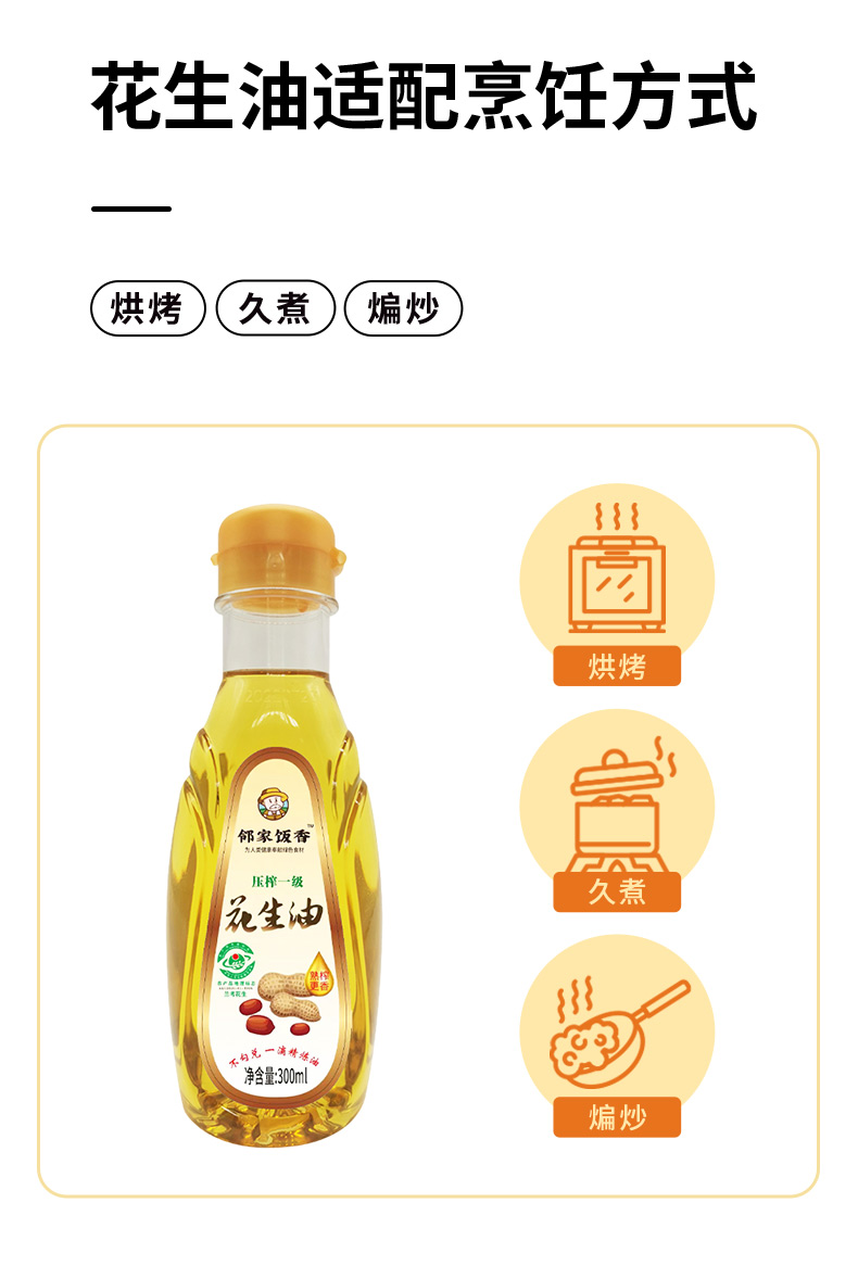 邻家饭香 物理压榨一级浓香花生油 地标兰考花生压榨 300ml/瓶 LJFX27