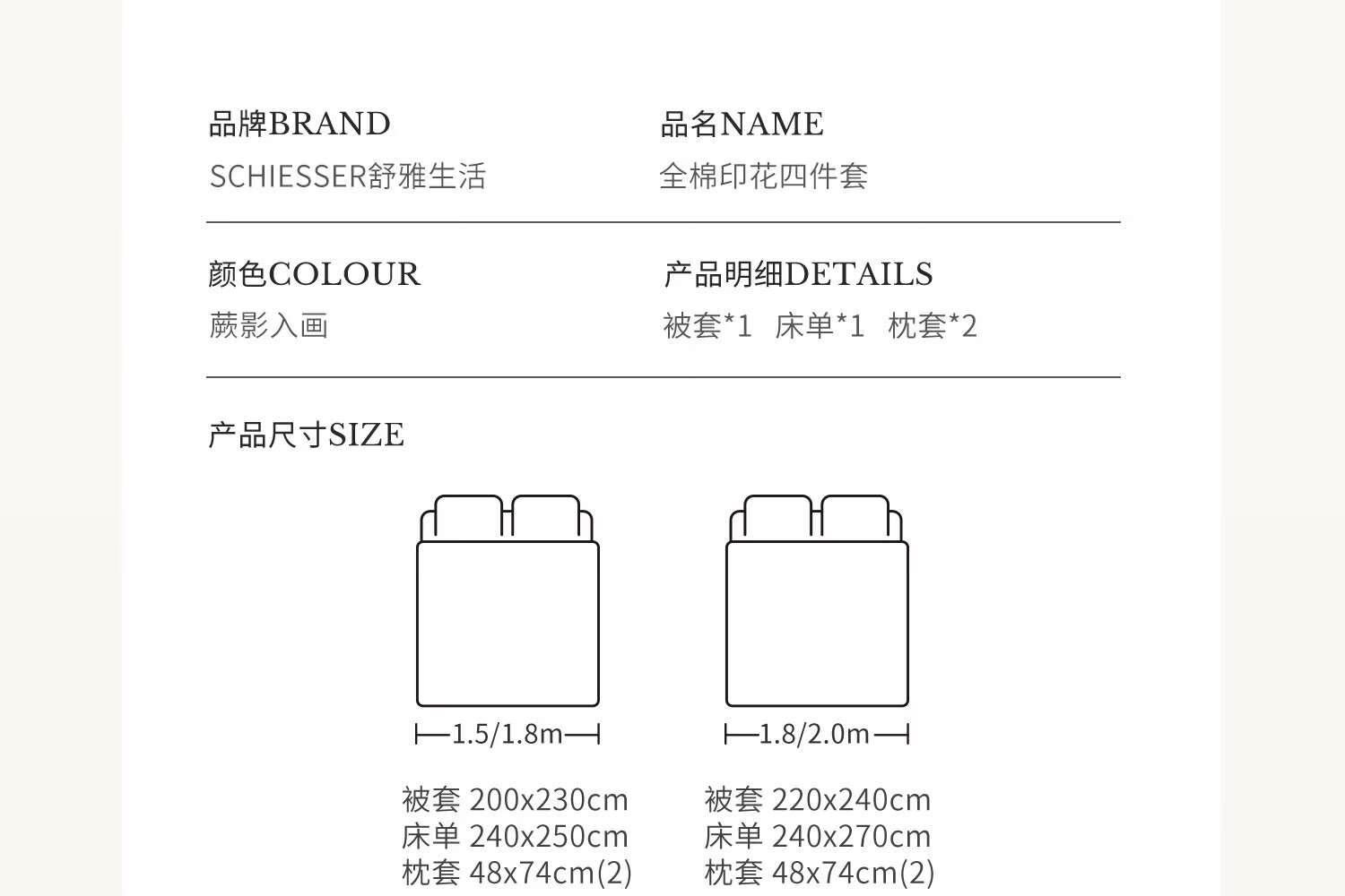 德国舒雅 全棉印花四件套-蕨影入画