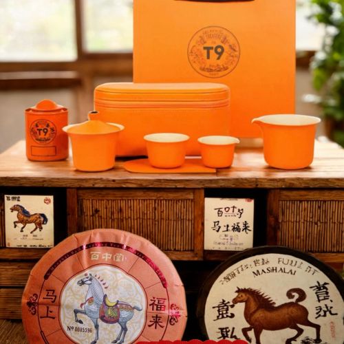 T9旅行功夫茶具套装+百中堂马年生肖茶饼