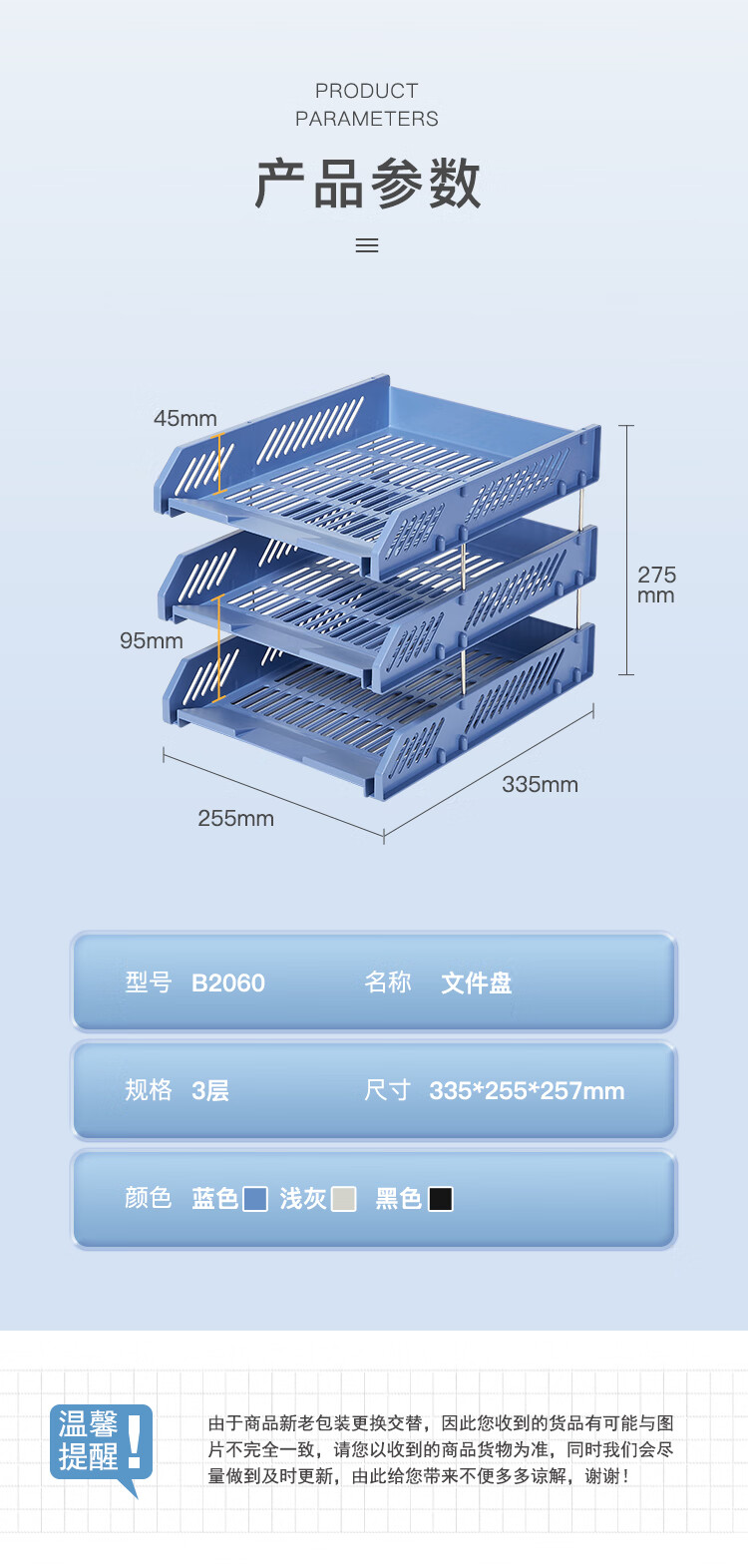 齐心(Comix)三层镂空收纳文件座 自由拆卸组装三层文件盘/文件框/文件架 牢固耐用 办公用品 黑色B2060