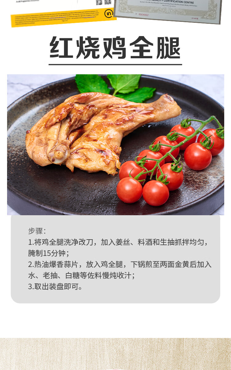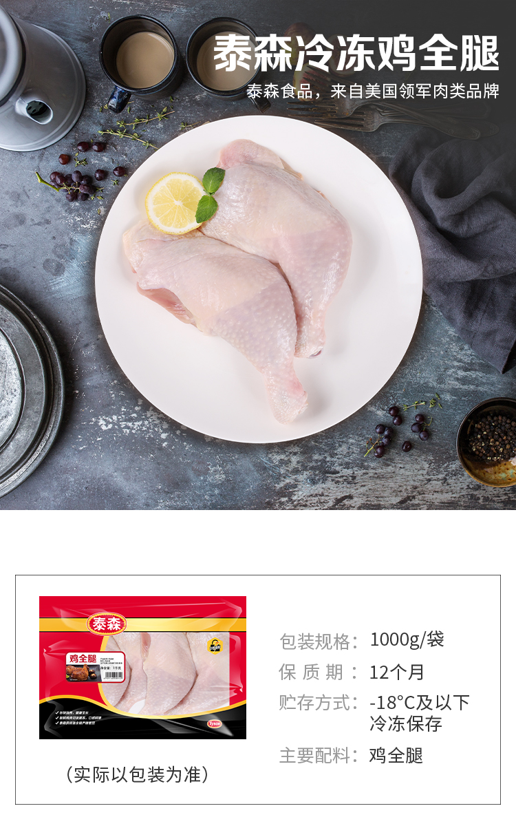 泰森(Tyson)鸡全腿 1kg/袋 冷冻 鸡肉 鸡大腿 生鲜食材