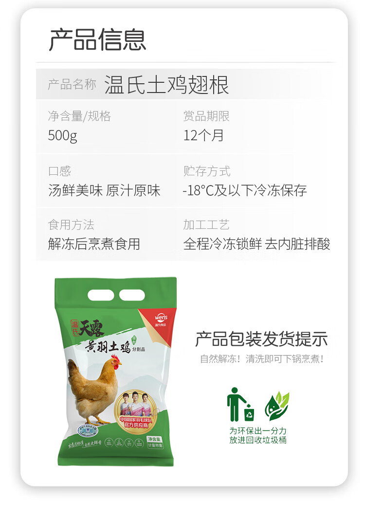 温氏 土鸡翅根500g 冷冻鸡翅根小鸡腿鸡翅膀烤鸡翅炸翅中烧烤冷冻食材