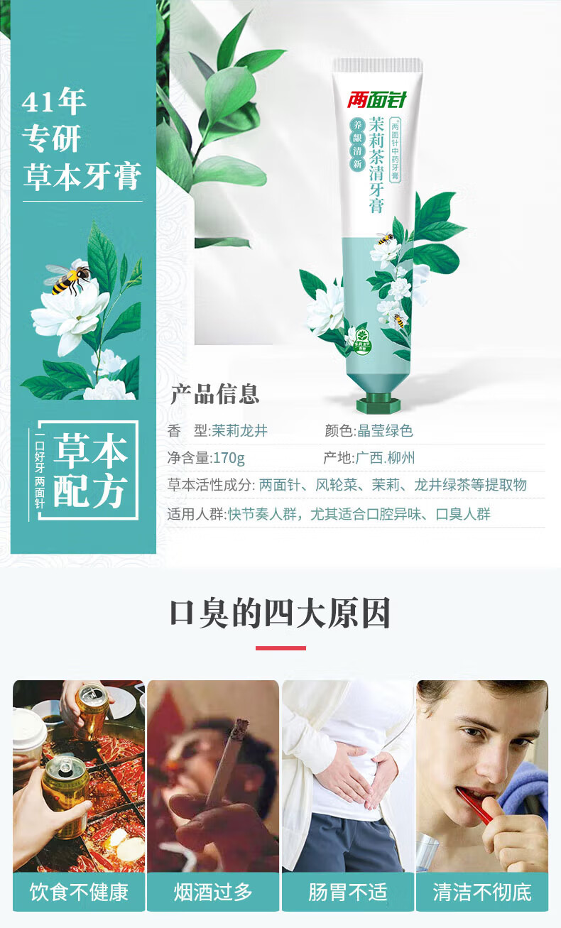 两面针(LMZ)茉莉茶清牙膏 护龈健齿 祛异味清新口气170g