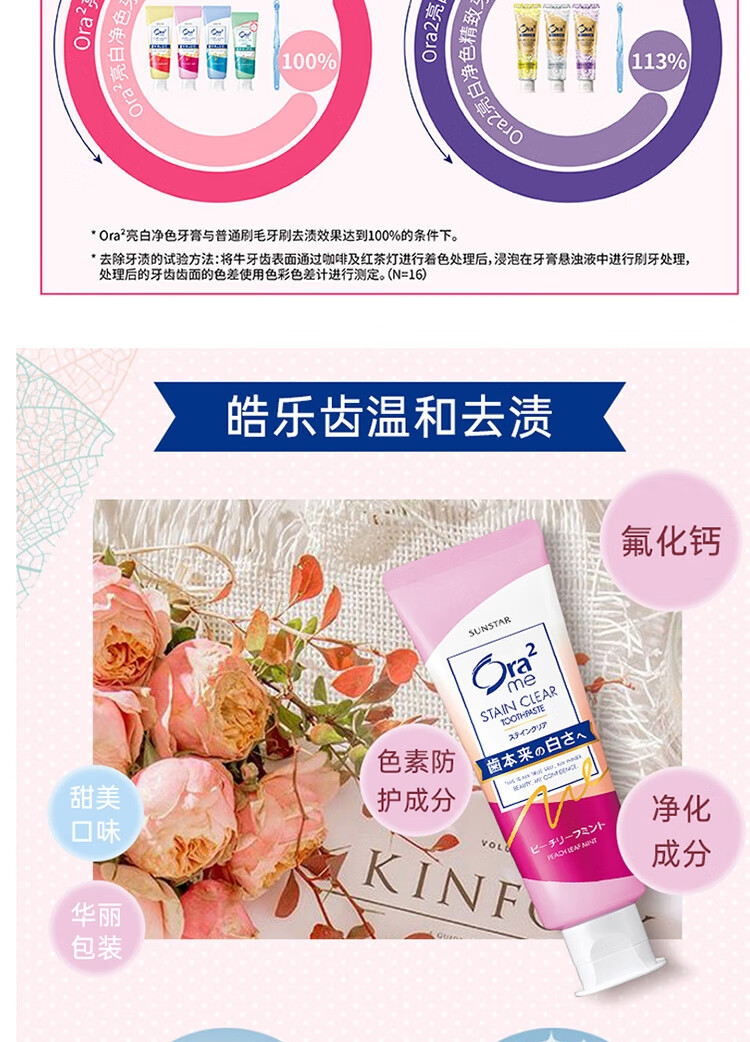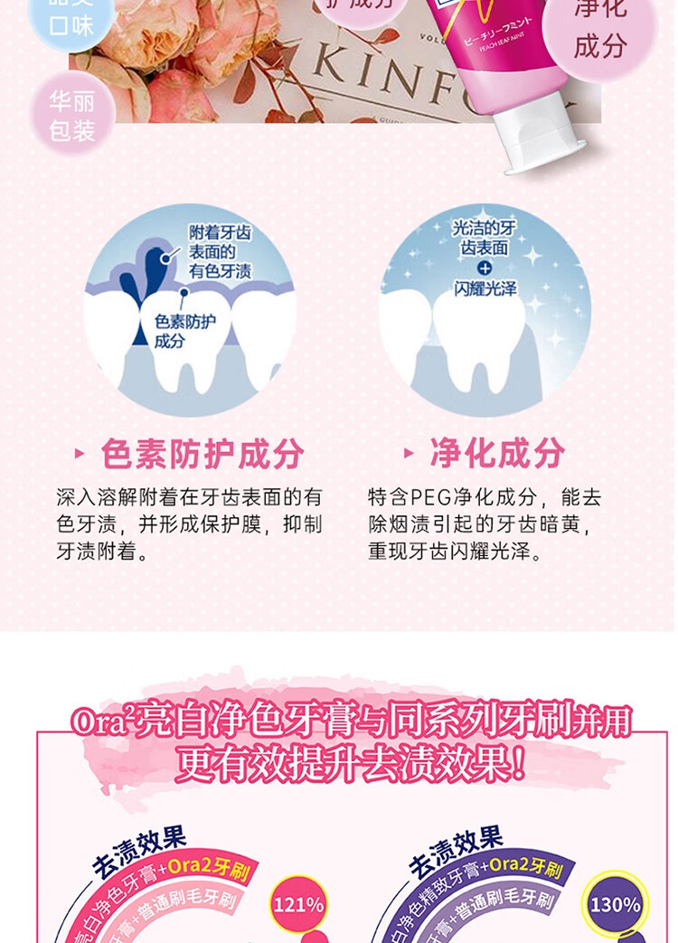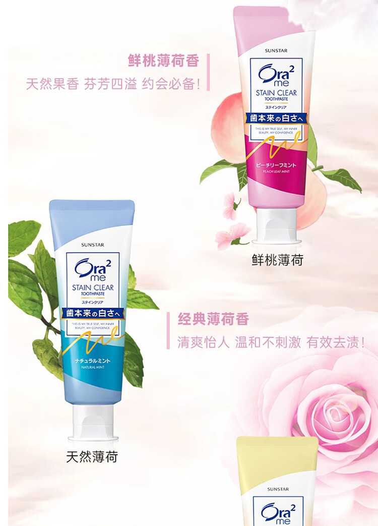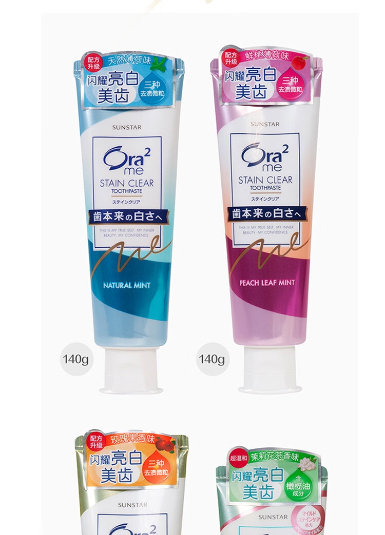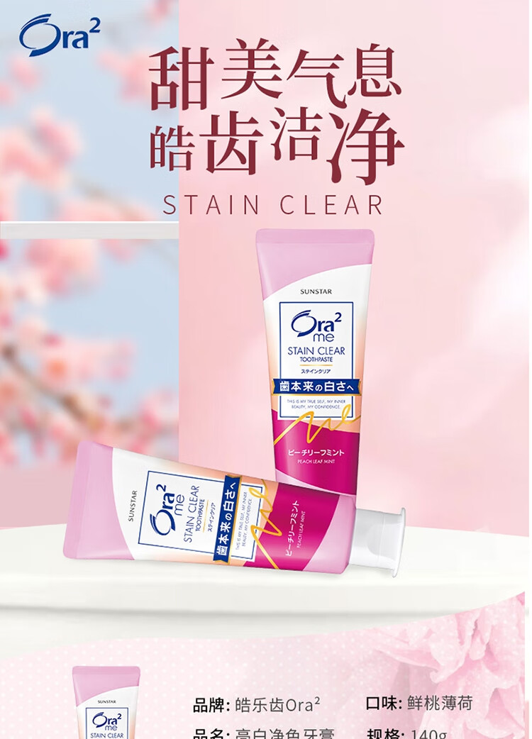 皓乐齿(Ora2) 亮白净色牙膏(鲜桃薄荷140g*2)温和去渍 天然果香 日本原装进口(新老包装随机发放)