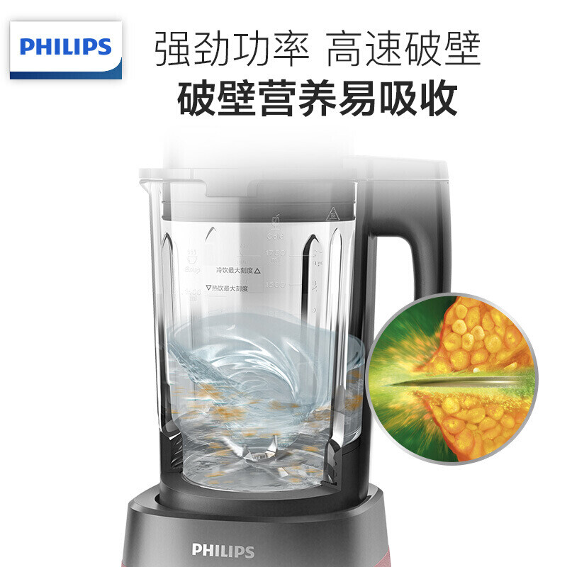 飞利浦(PHILIPS)破壁料理机家用全自动多功能加热电动榨汁搅拌豆浆机做养生果汁辅食HR2087/20