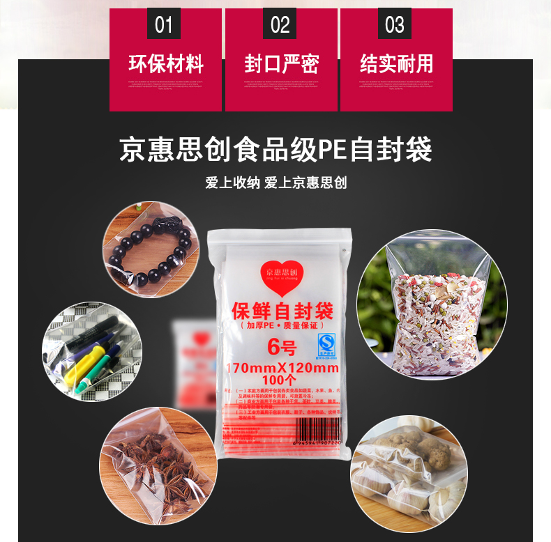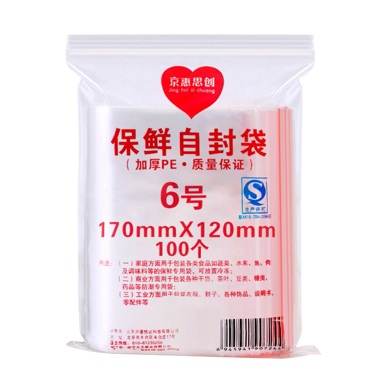 京惠思创 【加厚10丝】 防水食品自封袋 6号 12*17cm400只 PE透明收纳袋封口袋 包装袋保鲜袋密封袋密实袋