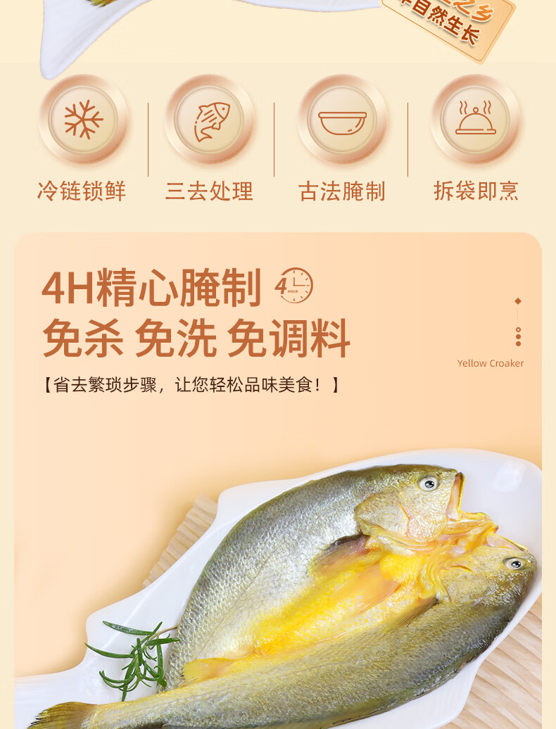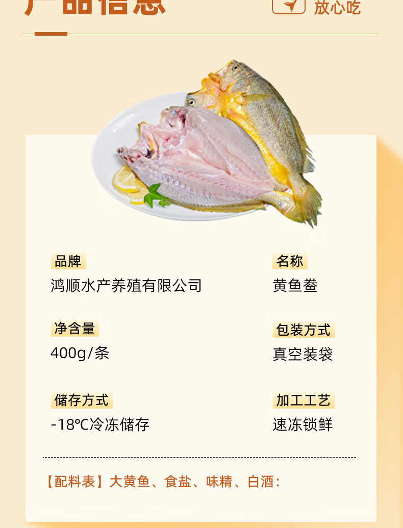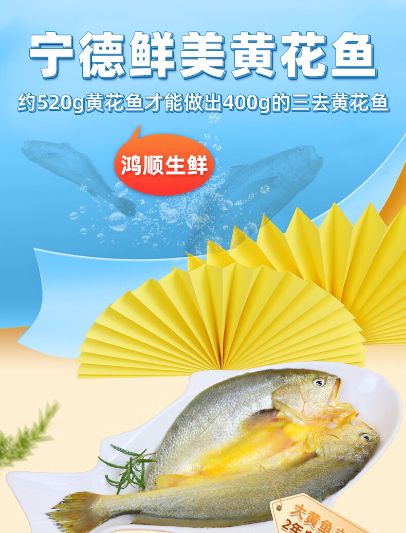 鸿顺黄鱼鲞400g/条 免杀即烹 黄花鱼 生鲜 鱼类 海鲜水产 海鱼 黄鱼