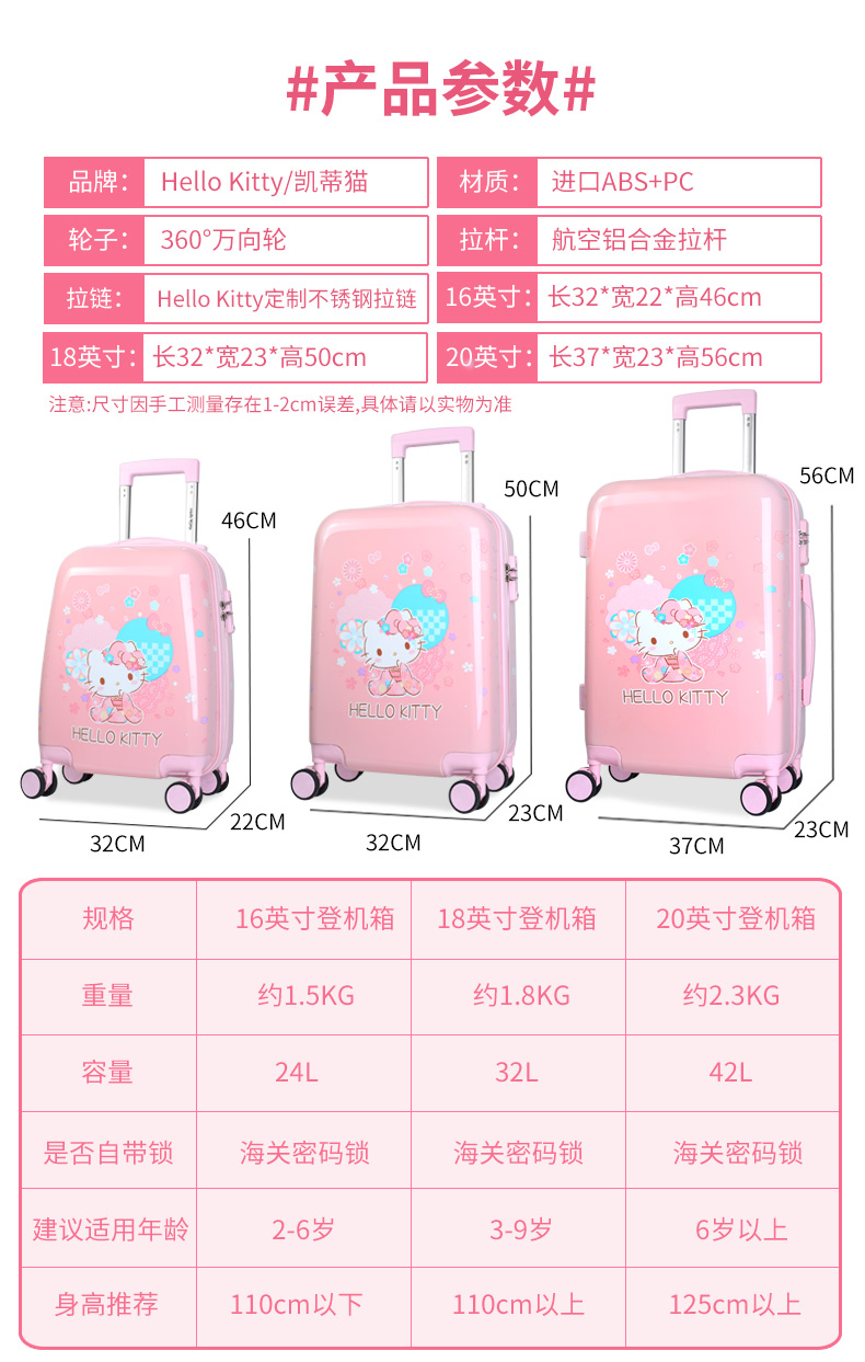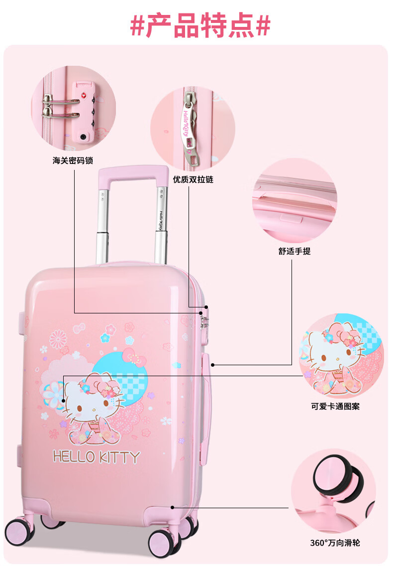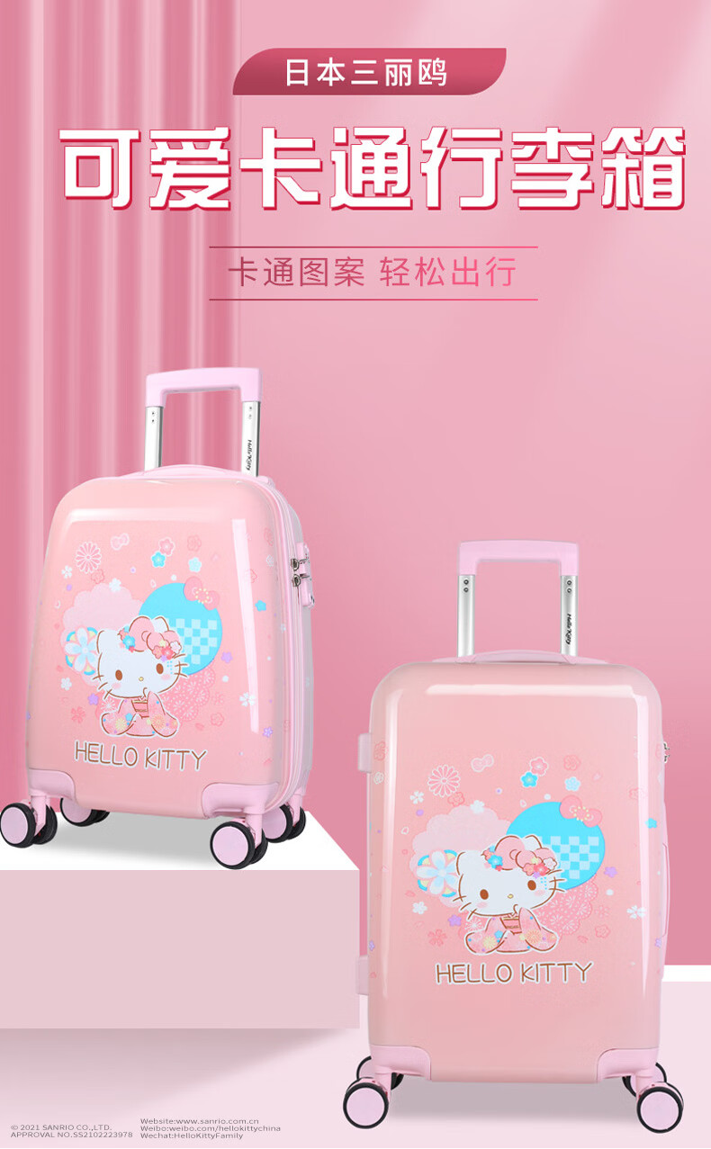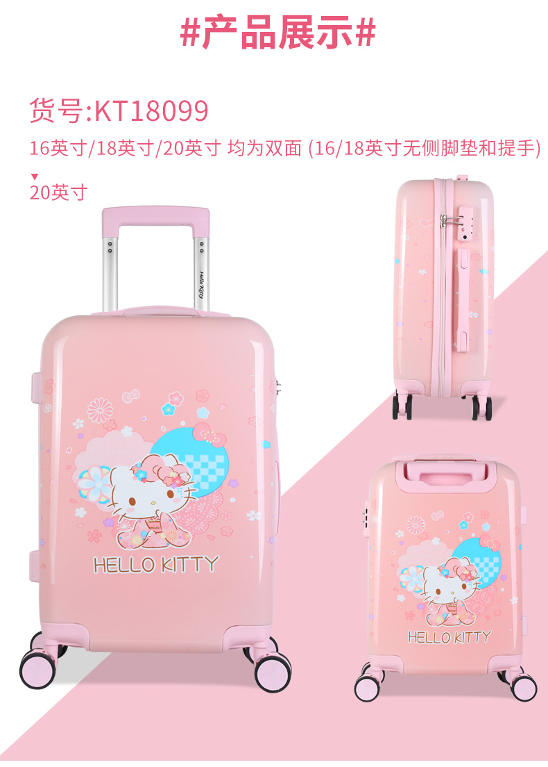凯蒂猫(hello kitty)儿童行李箱女孩可爱小型学生卡通拉杆箱宝宝女童旅行箱 KT18099-18