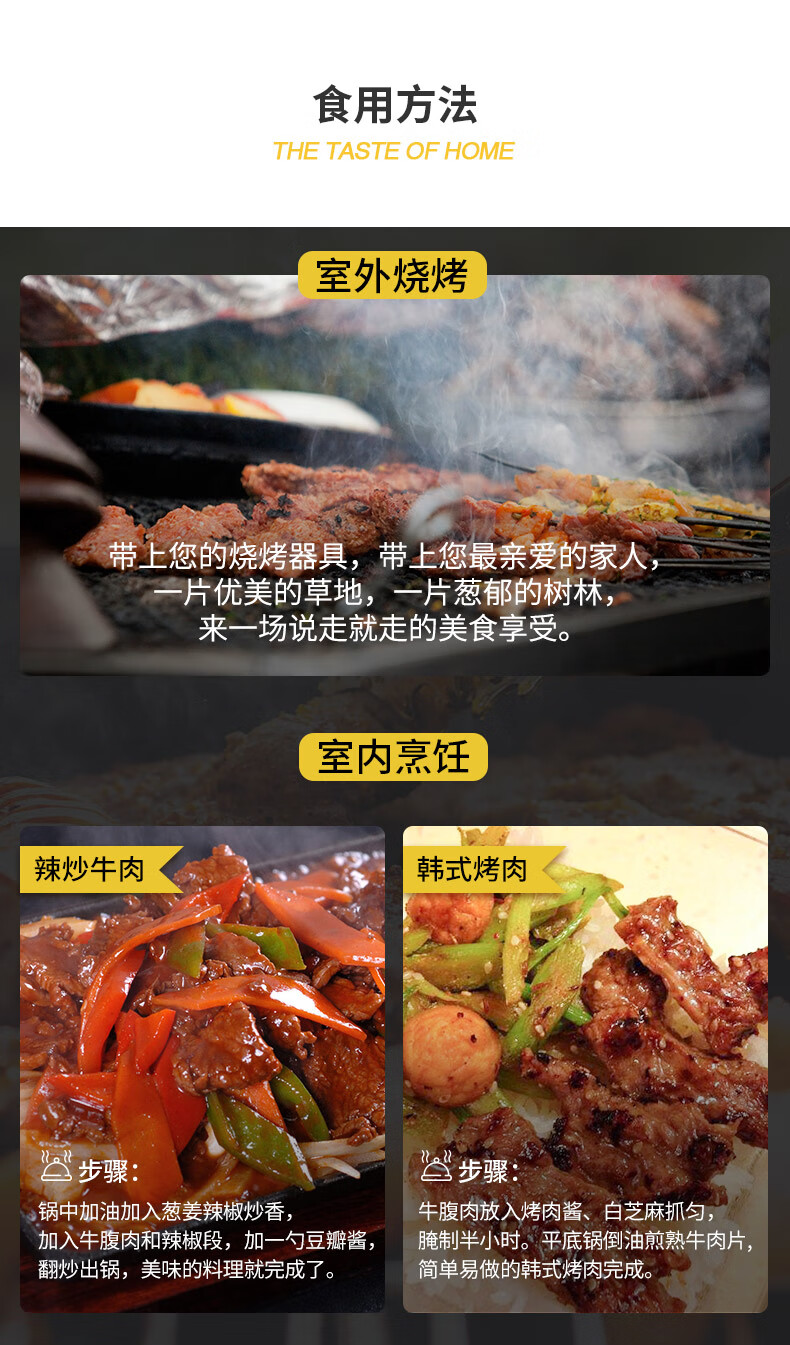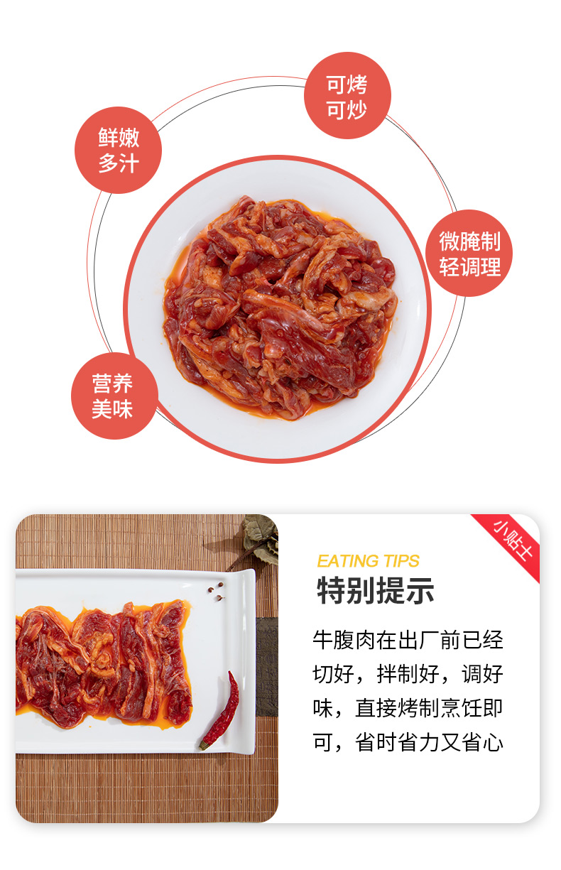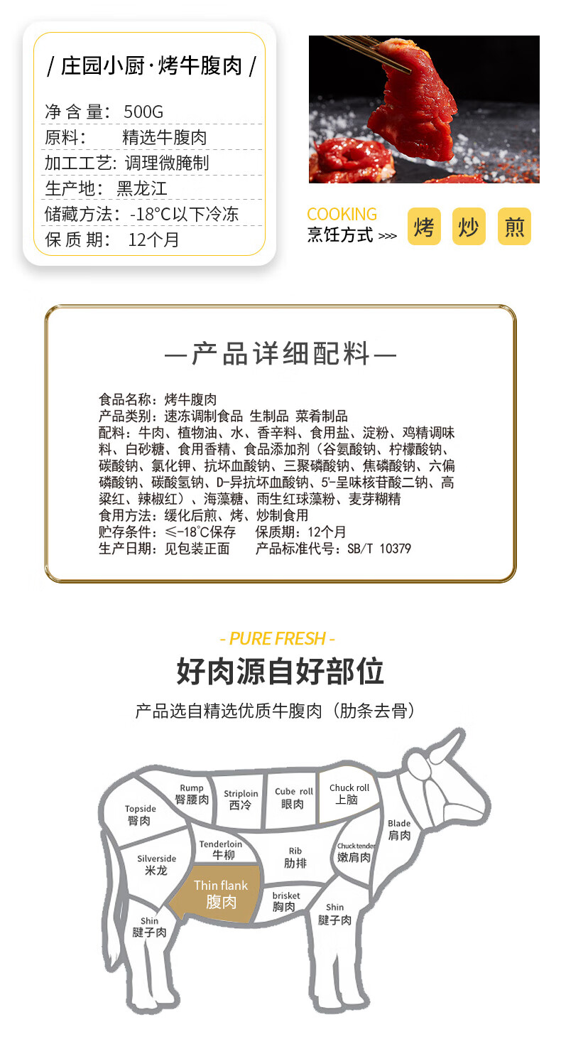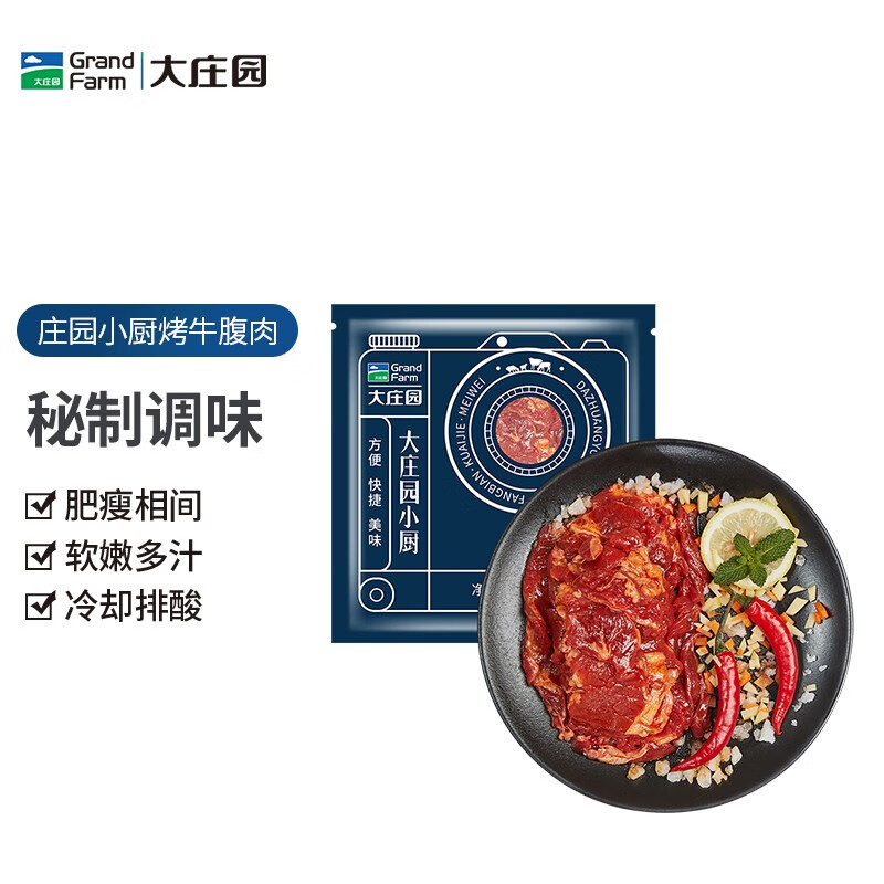 大庄园国产 烤牛腹肉 500g/袋 生鲜腌制牛肉烧烤烤肉食材微调半成品