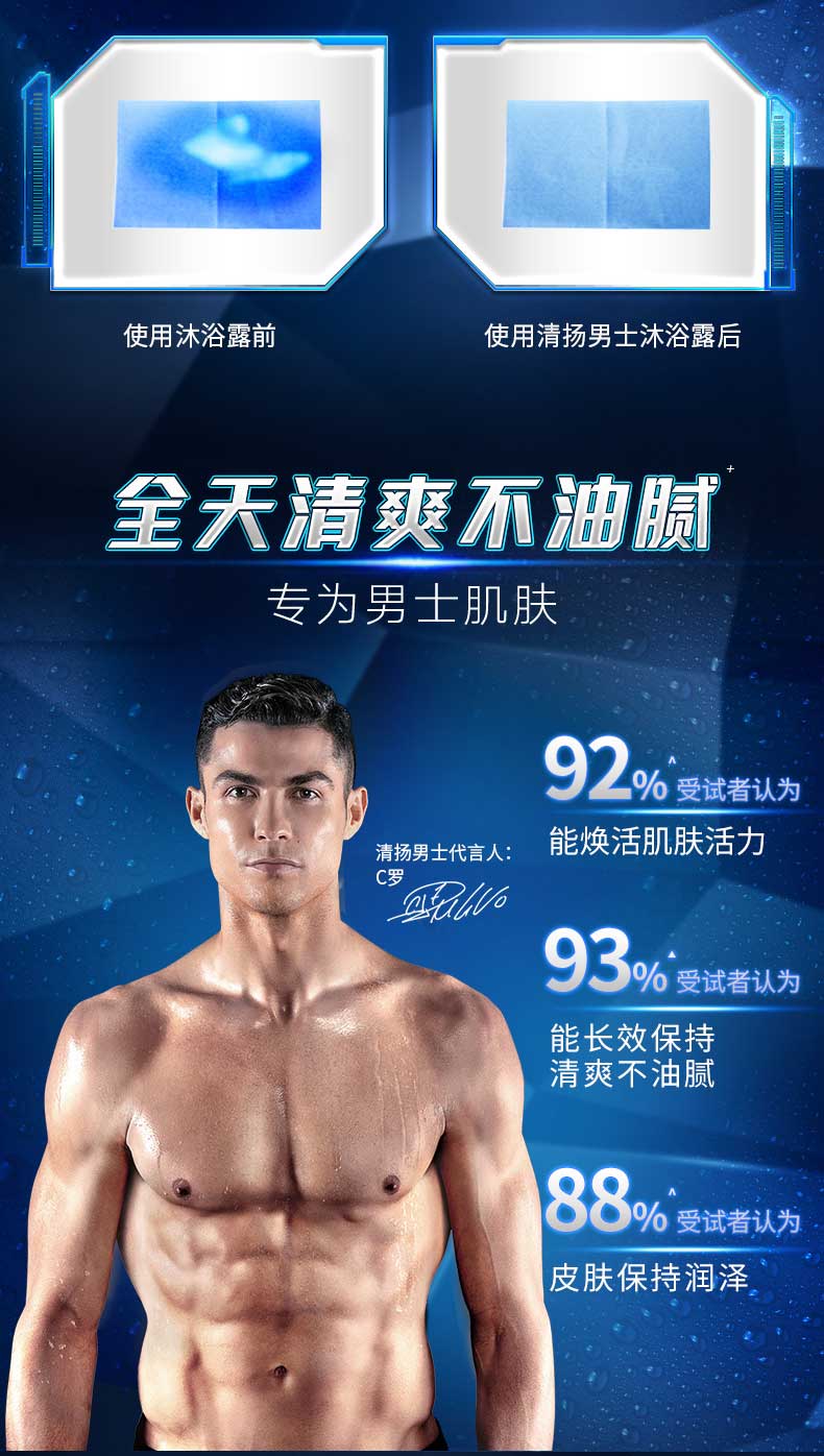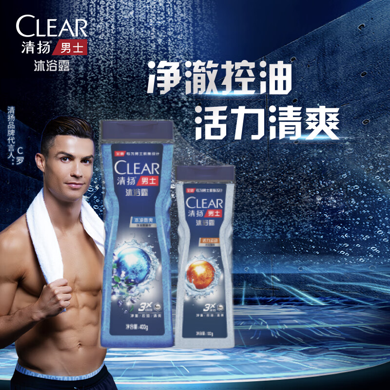 清扬(CLEAR)男士平衡控油沐浴露组套 冰凉酷爽400g+活力运动180g长效清爽 C罗