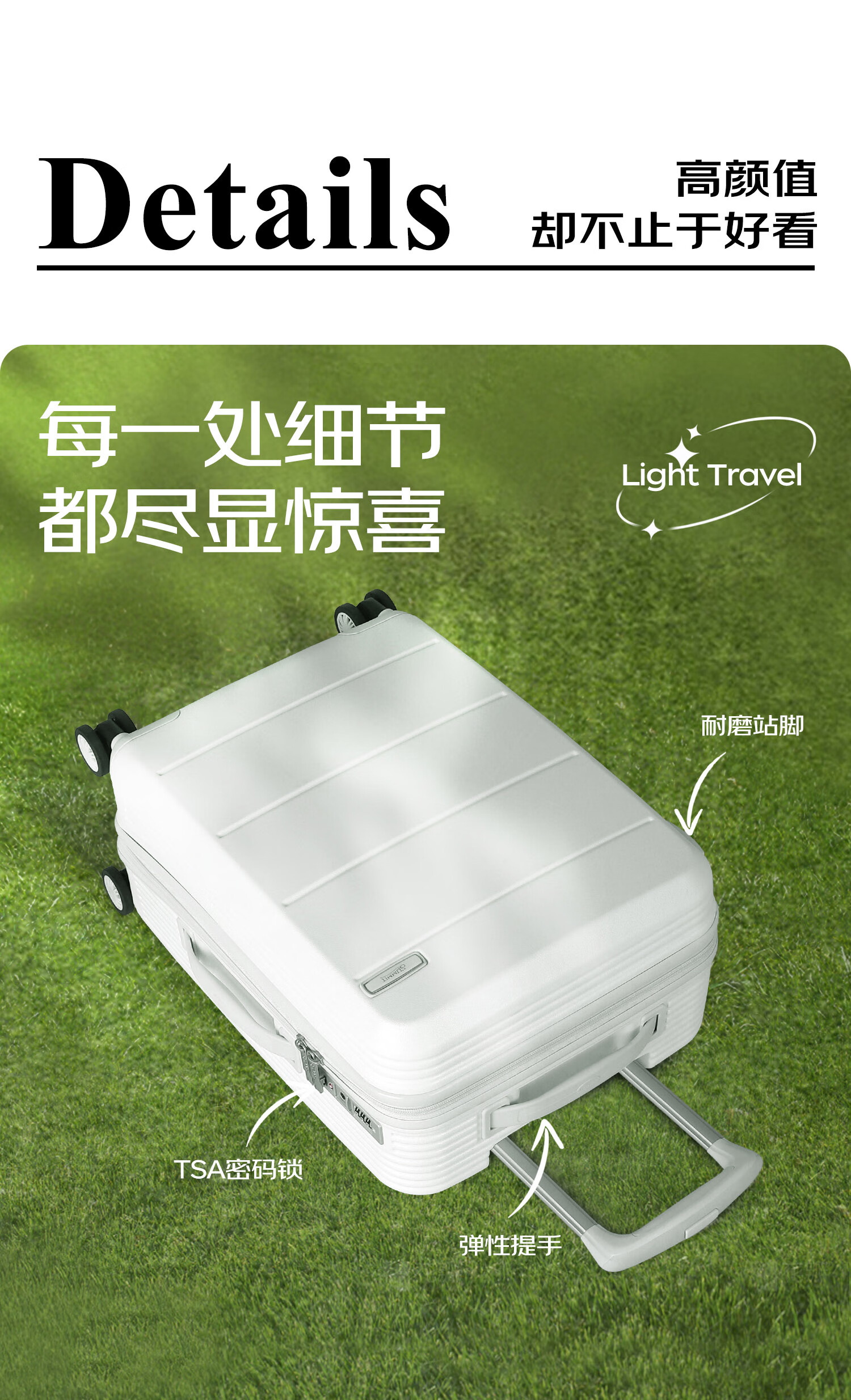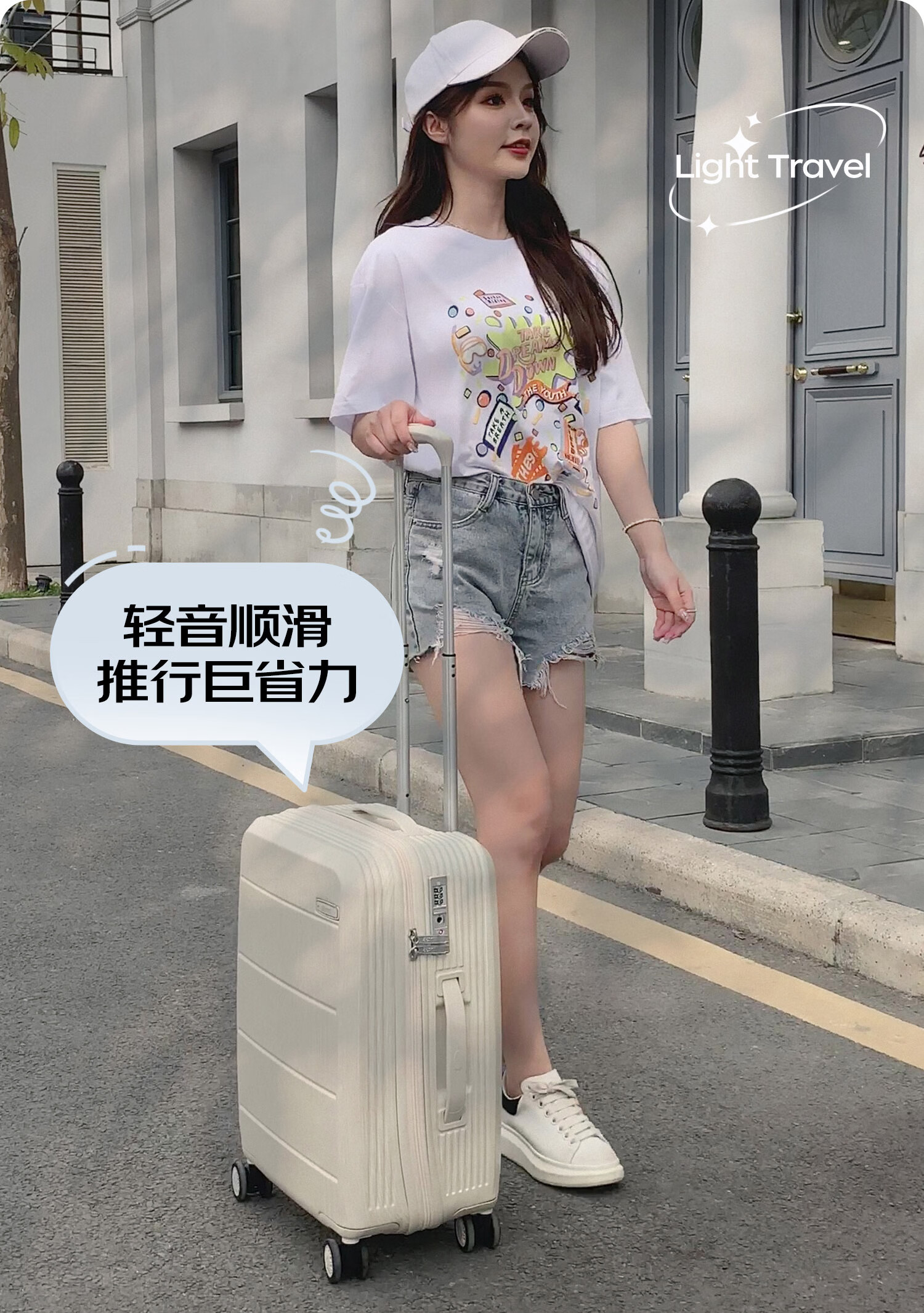 莎米特高颜值行李箱女拉杆箱男28英寸万向轮旅行箱大容量箱PC888米白色