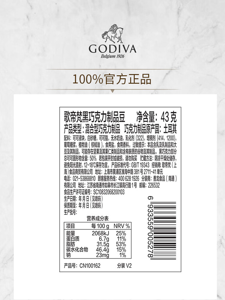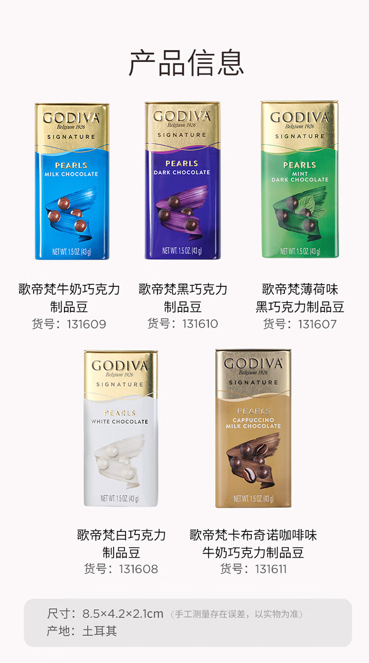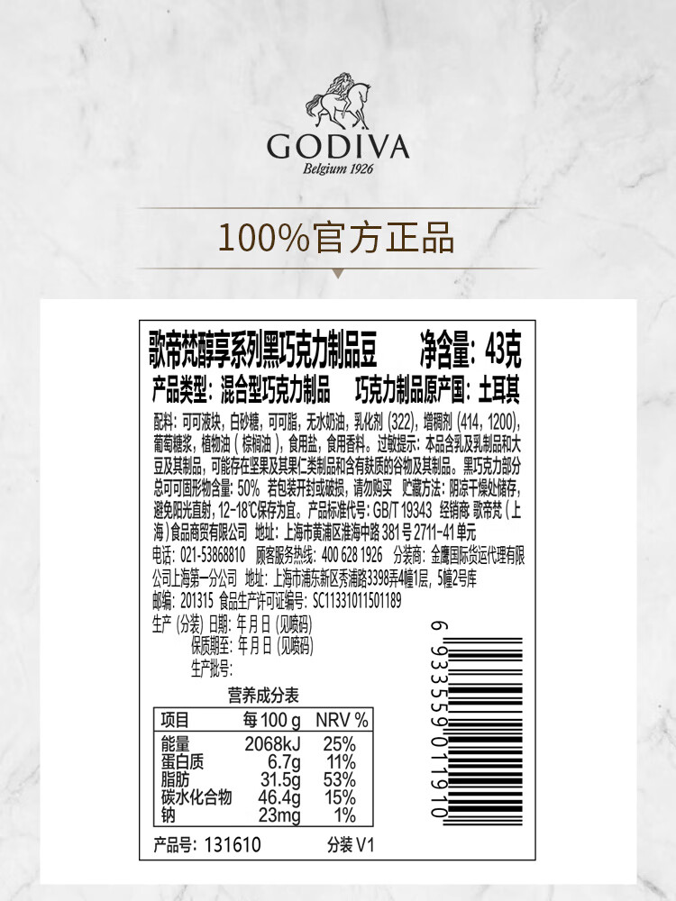 GODIVA歌帝梵黑巧克力制品豆 土耳其进口休闲食品 下午茶 儿童礼物