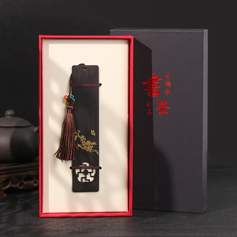 TaTanice 紫檀木书签 中国风木质古典商务礼品送老外 生日礼物情人节礼物女 荷塘月色单片礼盒装