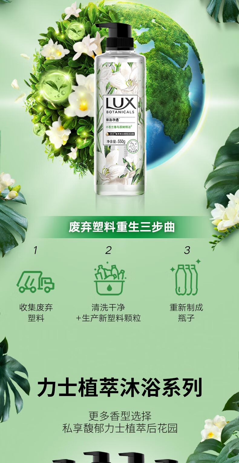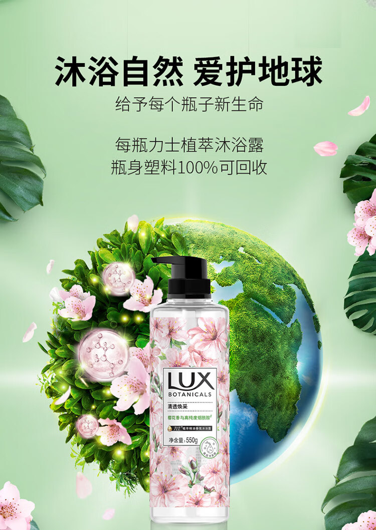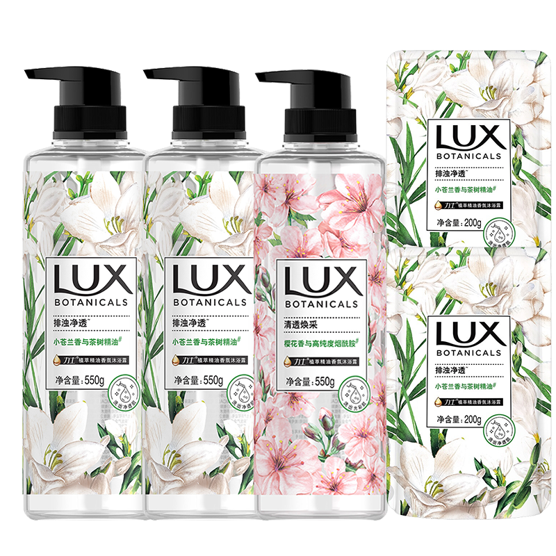力士(LUX)植萃精油香氛沐浴露套装小苍兰550gx2+樱花550g送200gx2持久留香
