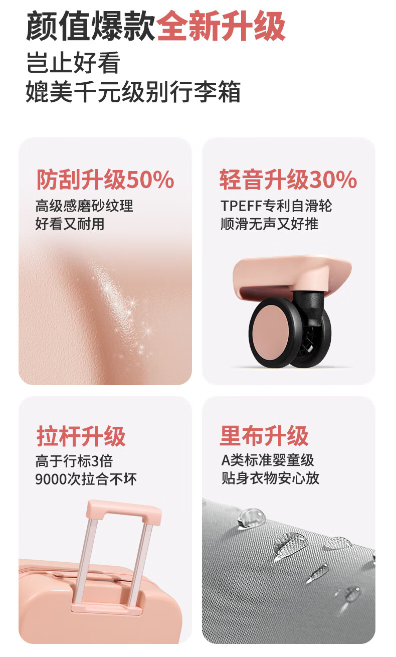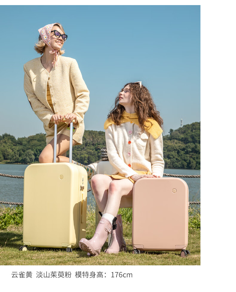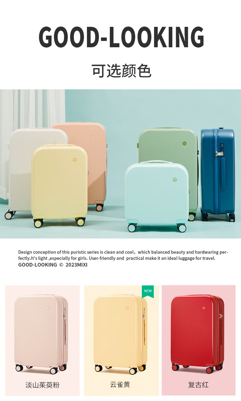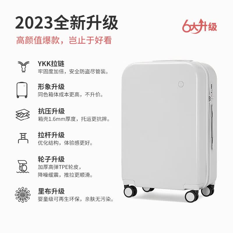 米熙mixi高颜值密码箱女拉杆箱子行李箱大容量旅行箱包26英寸烟白学生