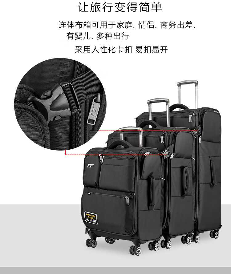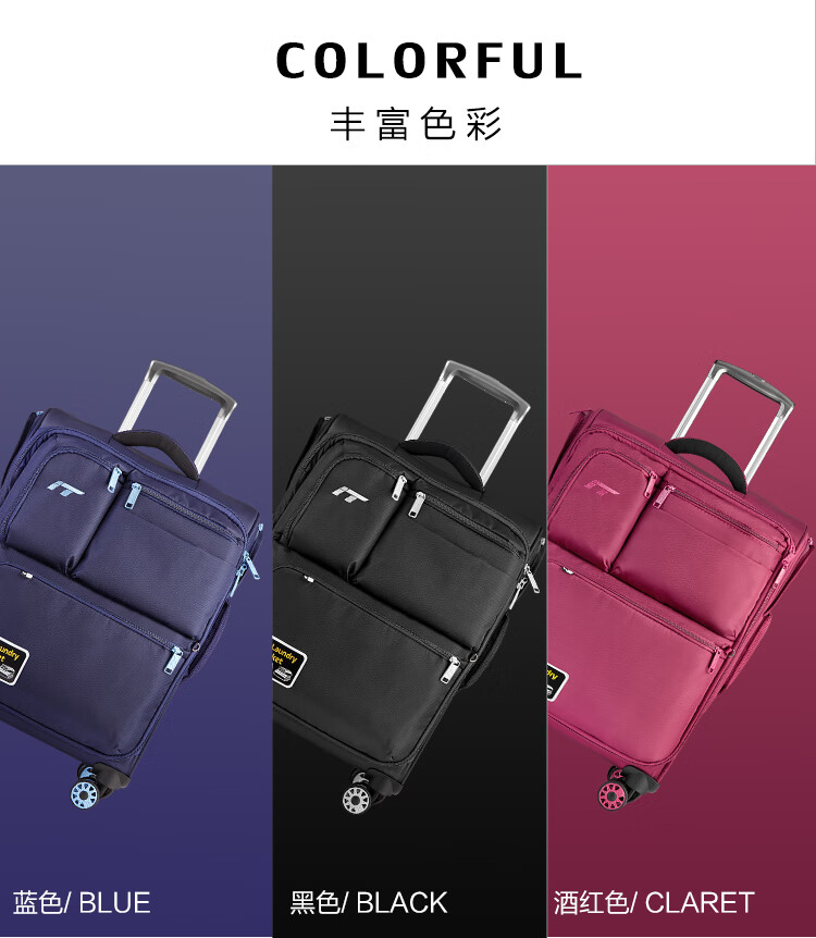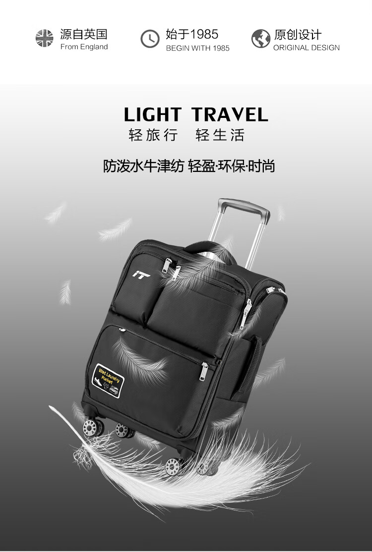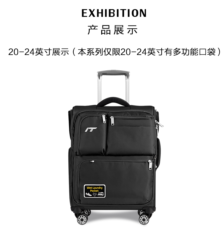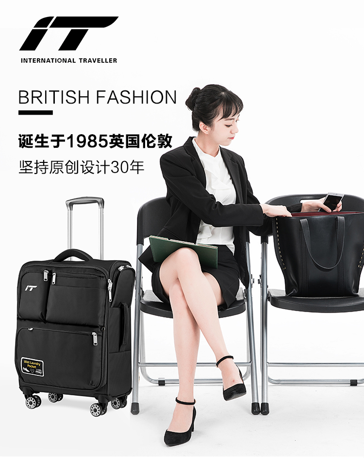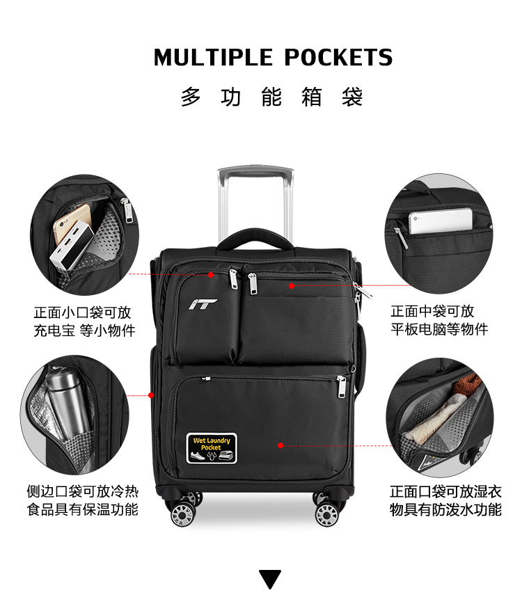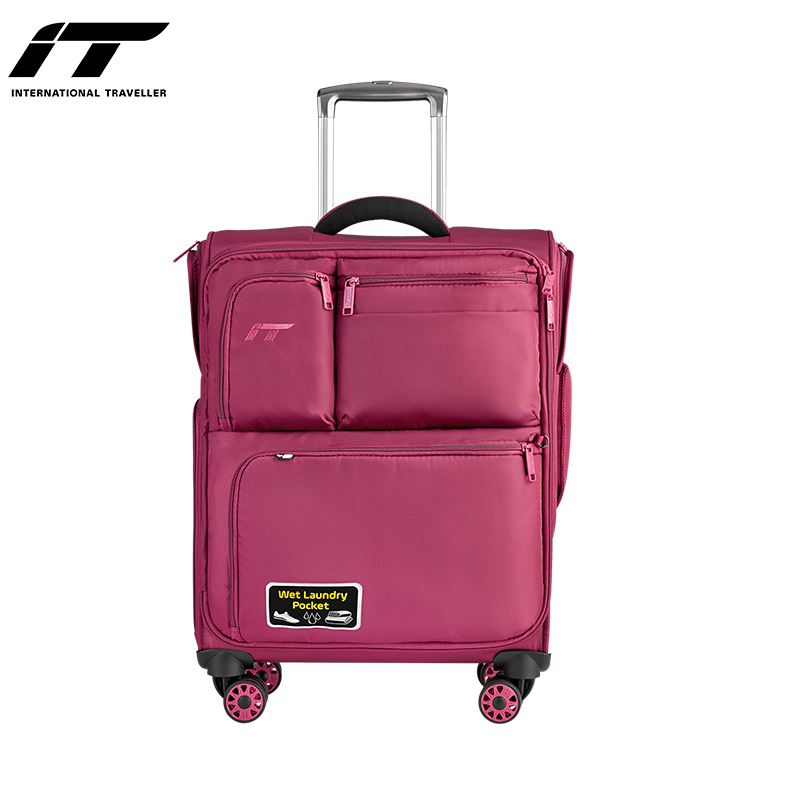 INTERNATIONAL TRAVELLER英国IT拉杆箱登机旅行箱万向轮超轻行李箱多口袋20英寸软箱1157红