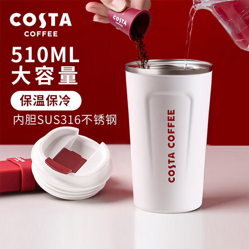 COSTA经典保温杯咖啡杯大容量不锈钢随行杯外带车载便携水杯 白色510ml
