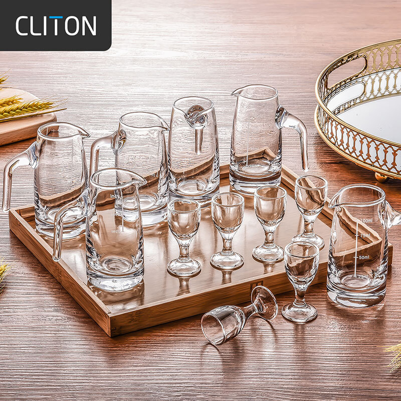 CLITON白酒杯分酒器套装一口杯高脚茅台酒杯刻度分酒壶玻璃烈酒杯6杯6壶