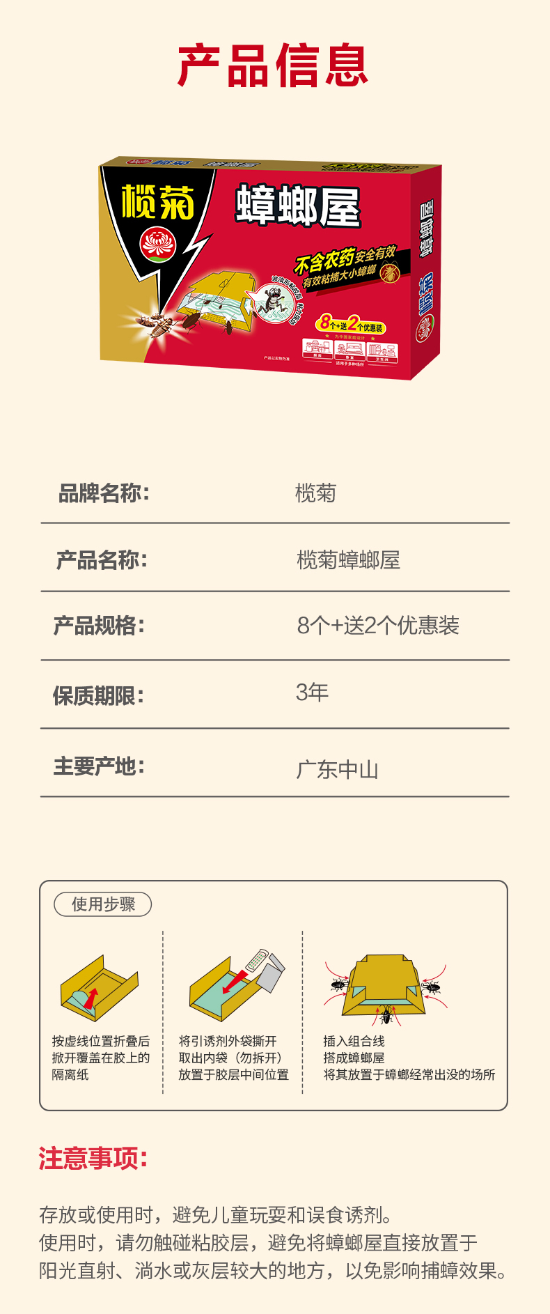 榄菊 蟑螂屋10片/盒蟑螂贴家用杀蟑除蟑螂药灭蟑螂器全窝端