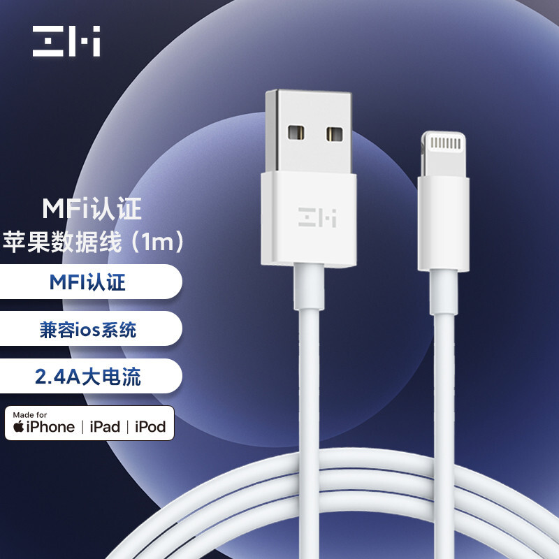 ZMIMFi认证苹果数据线适用于iPhone14/13Pro Max/12/11/ipad mini充电线 AL813C白
