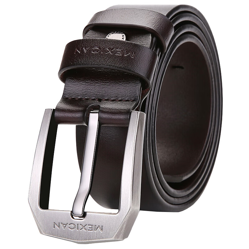 稻草人(MEXICAN)男士皮带针扣牛皮商务裤带休闲复古青年腰带MXI11219M-01黑色