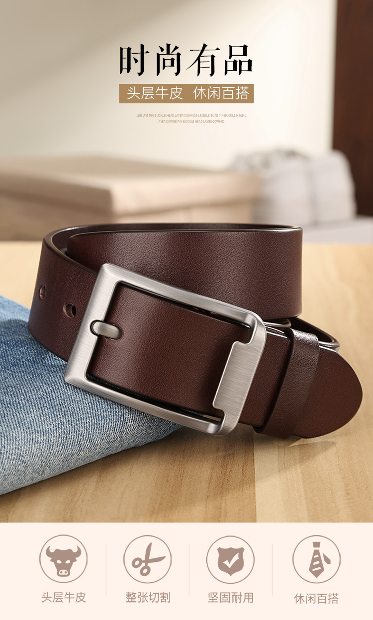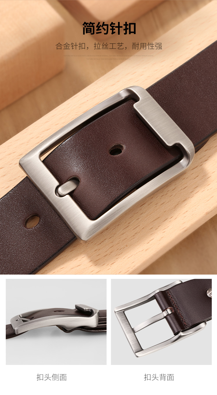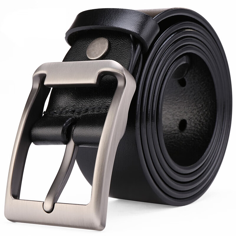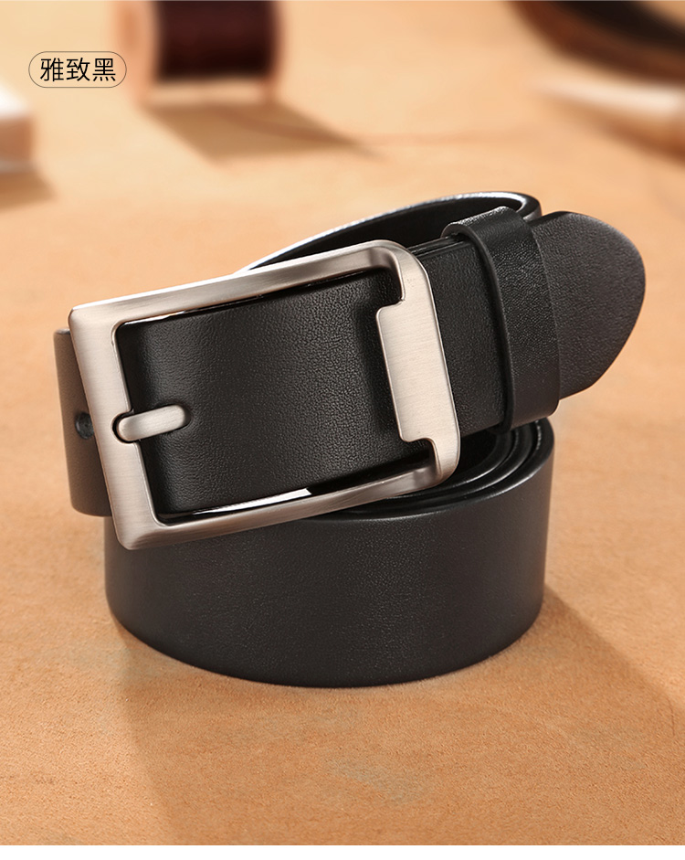 牛当家皮带男 针扣腰带男 牛皮休闲头层牛皮裤带1101 雅致黑