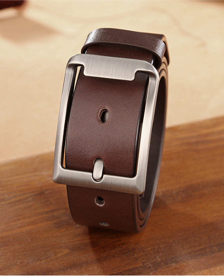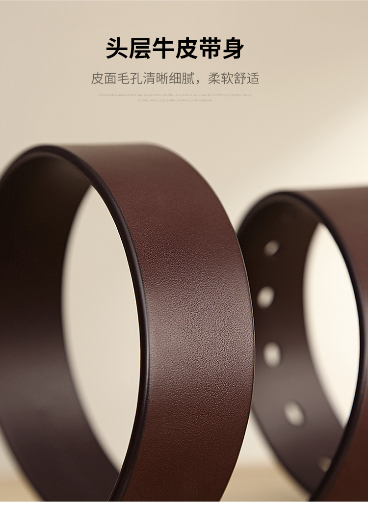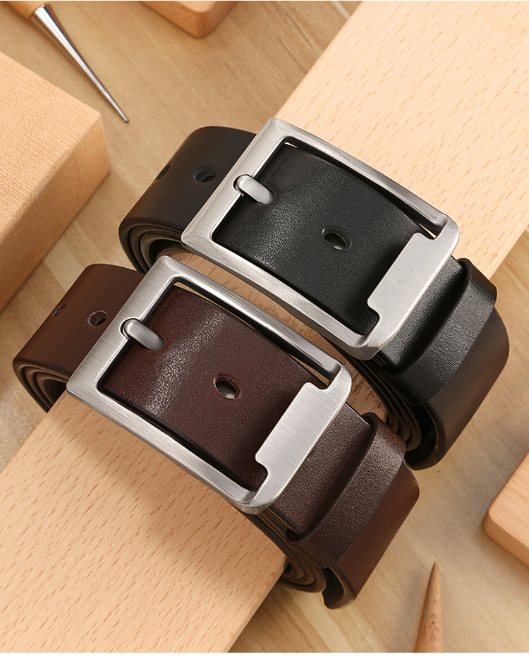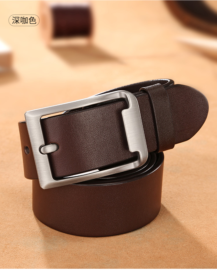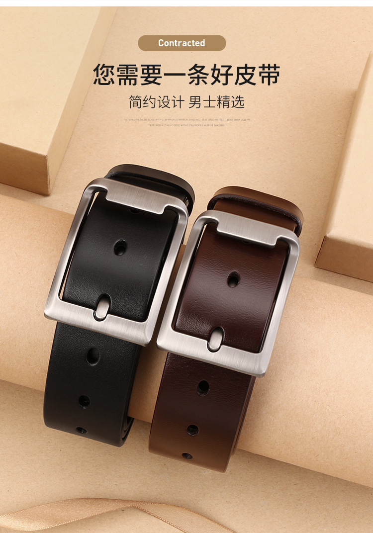 牛当家皮带男 针扣腰带男 牛皮休闲头层牛皮裤带1101 雅致黑