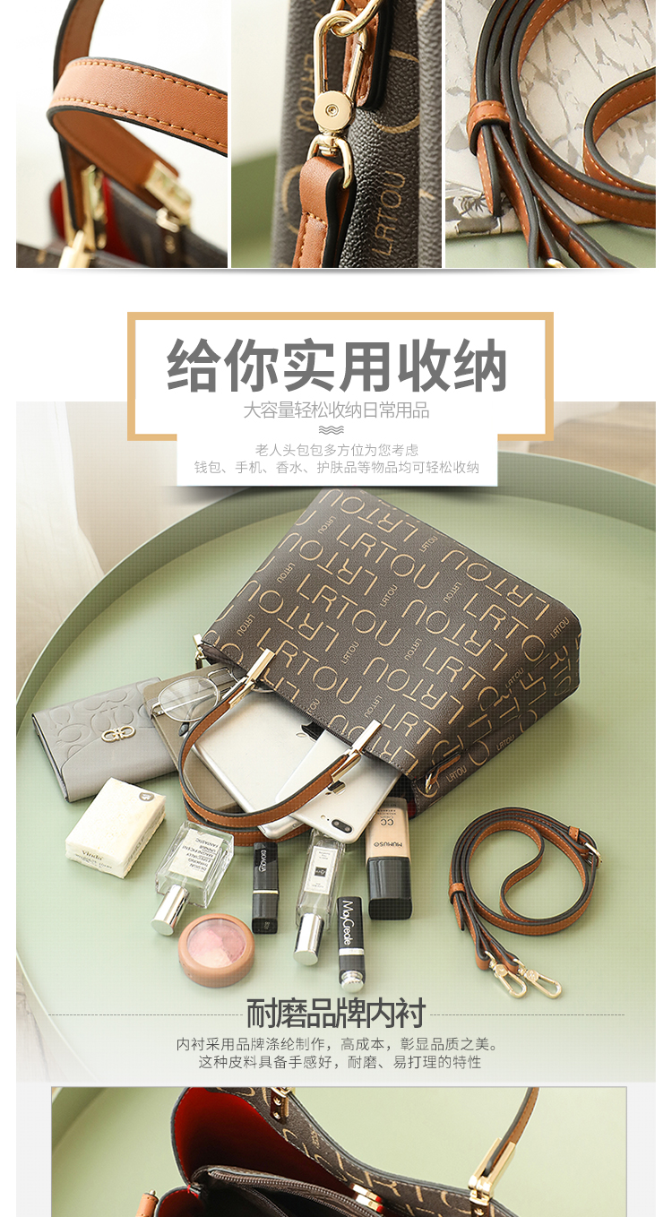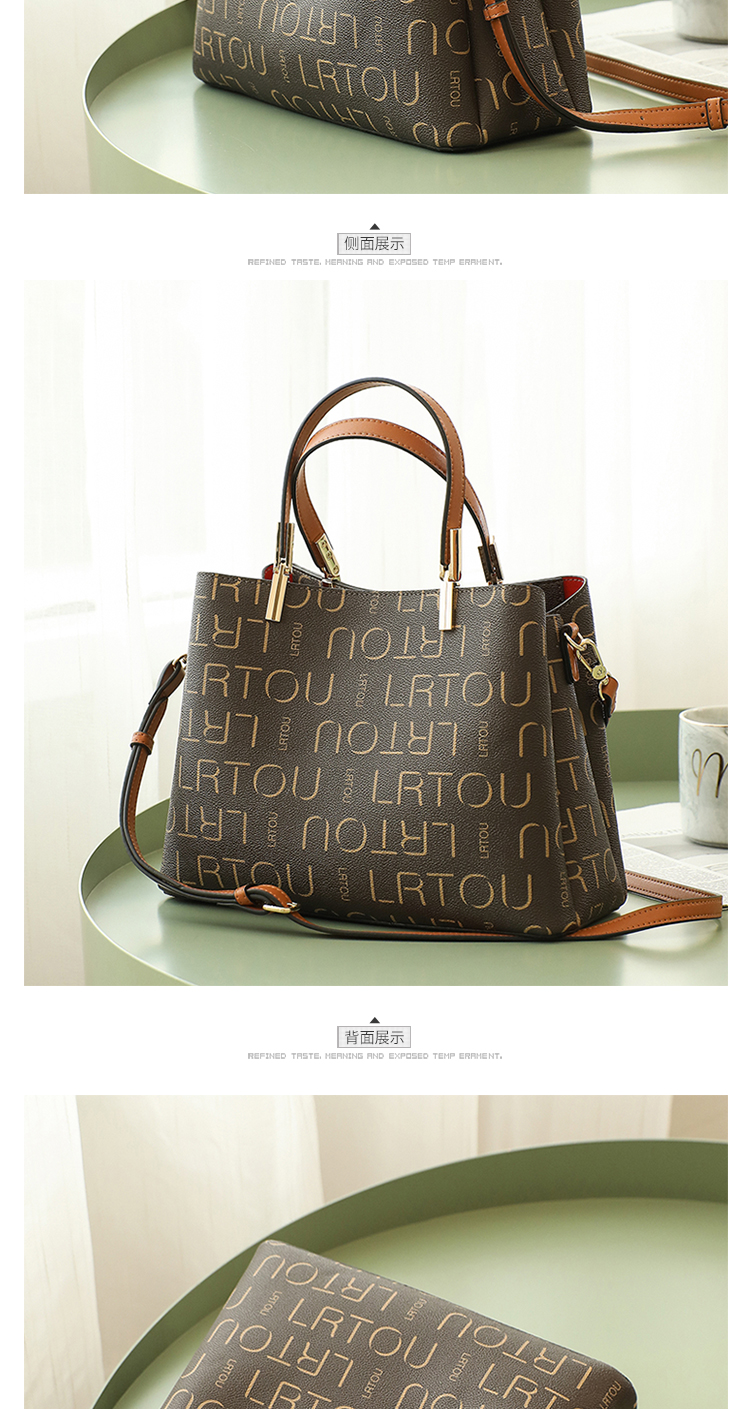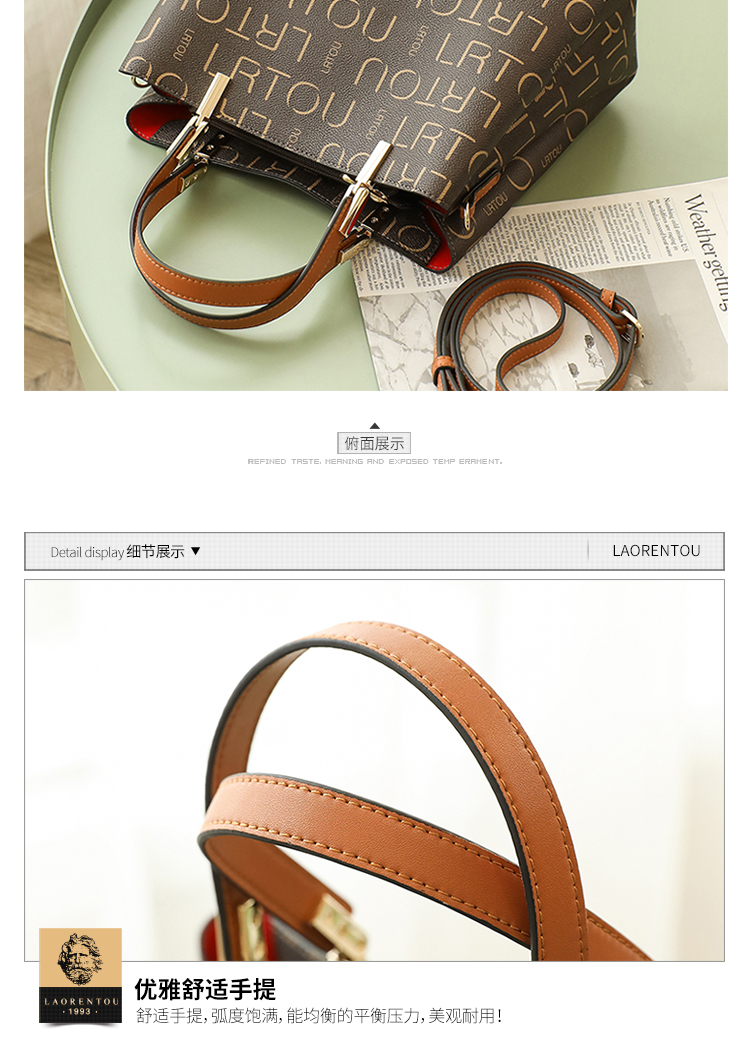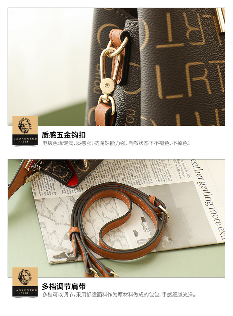 老人头(LAORENTOU)包包女包韩版ck印花单肩包女百搭时尚斜挎包手提包女士包包JD9082660ZY27L1B啡色