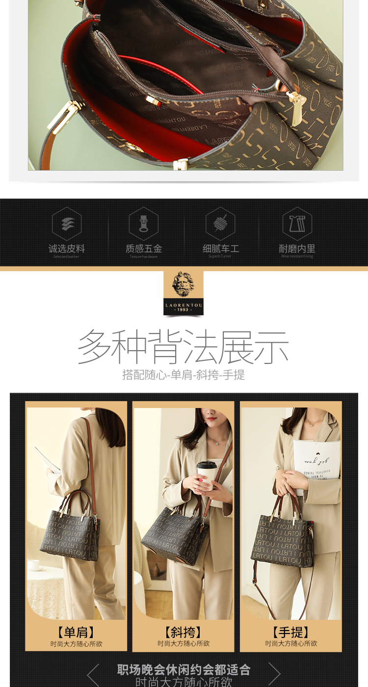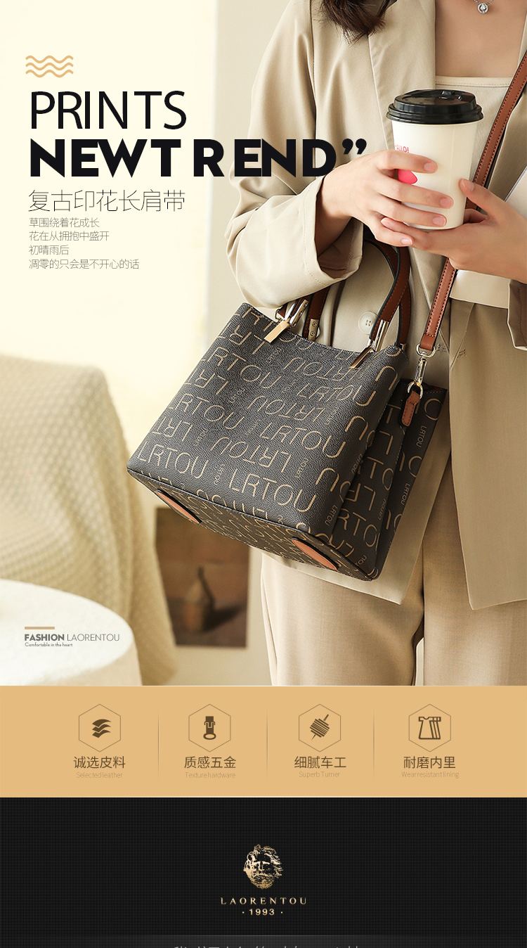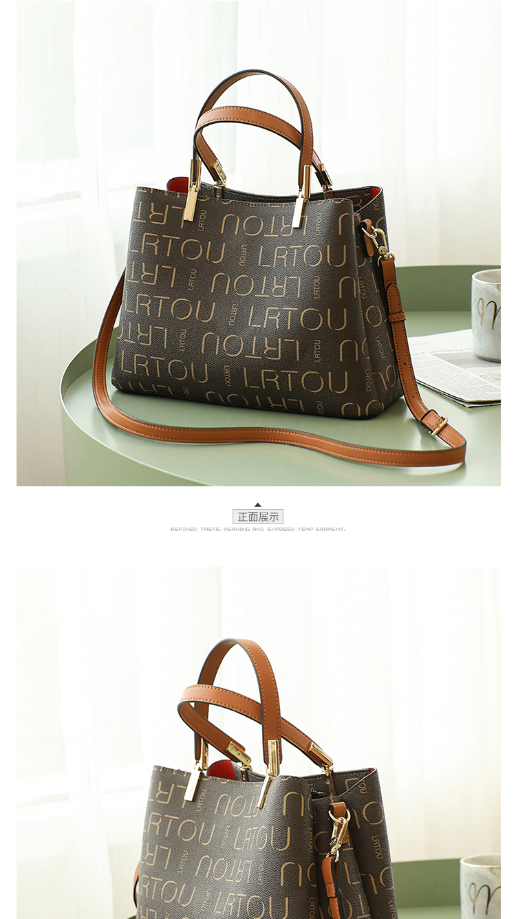 老人头(LAORENTOU)包包女包韩版ck印花单肩包女百搭时尚斜挎包手提包女士包包JD9082660ZY27L1B啡色