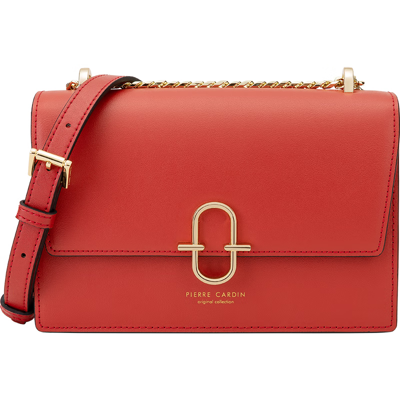 皮尔卡丹(pierre cardin)单肩斜挎包女新版星轨锁扣小方包翻盖链条包包女包斜挎牛皮礼盒 J0A218-800301C红色生日礼物