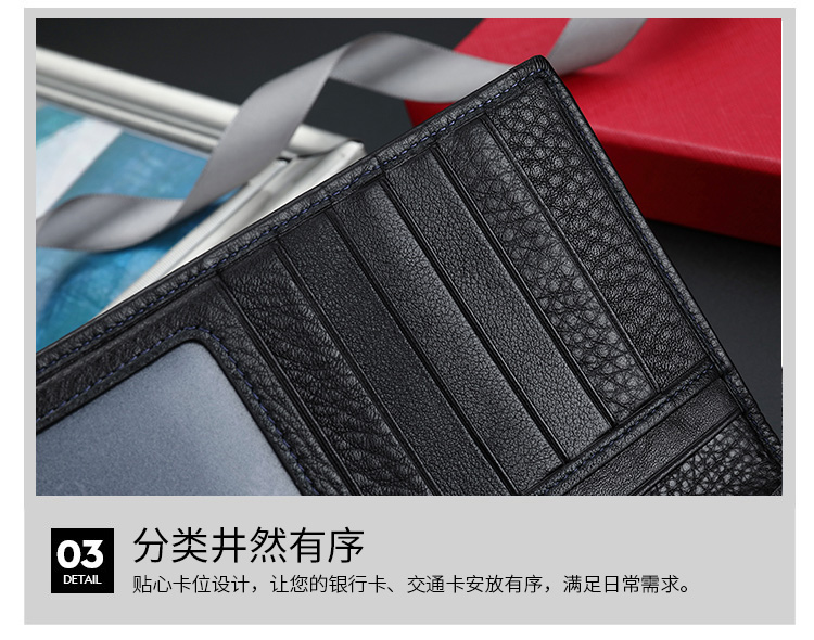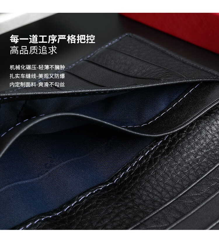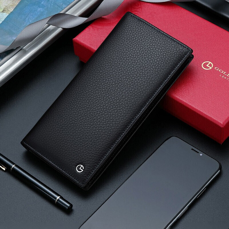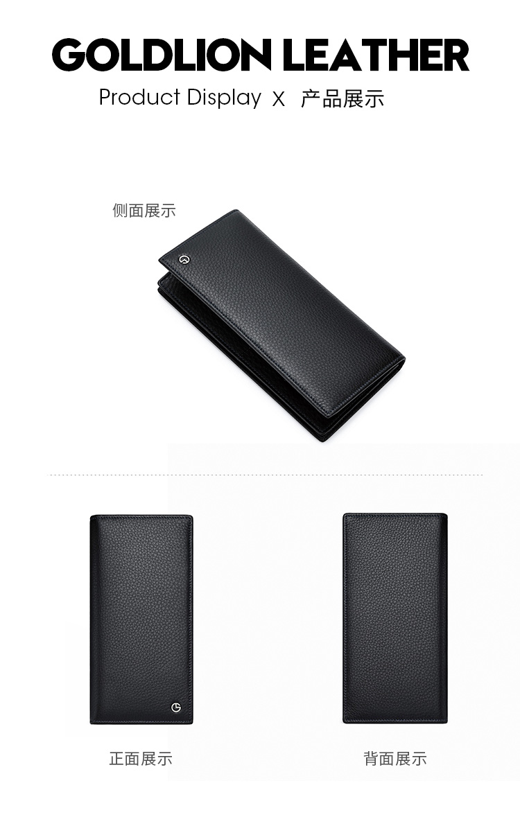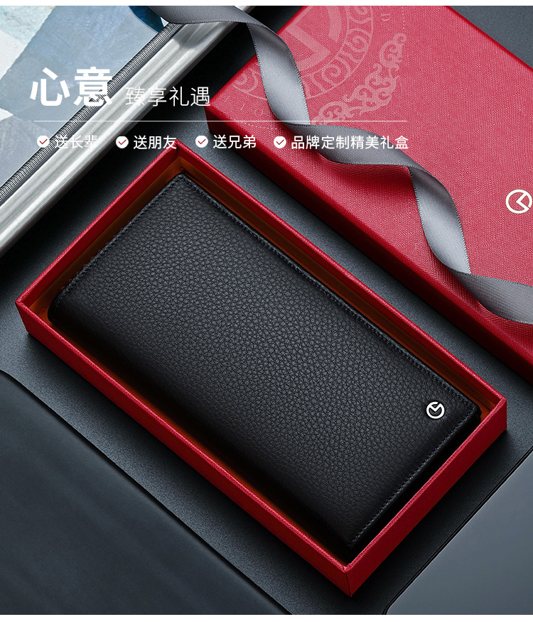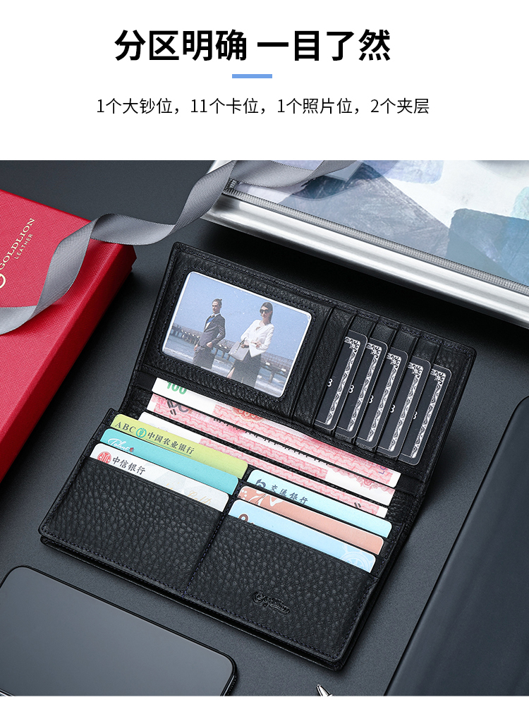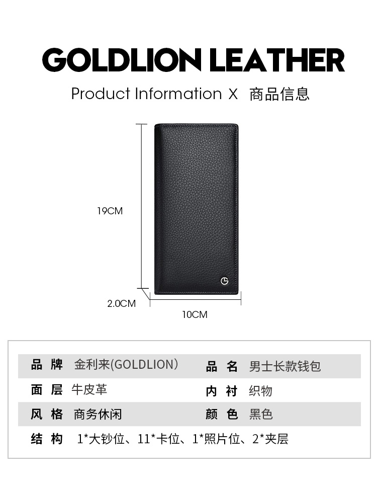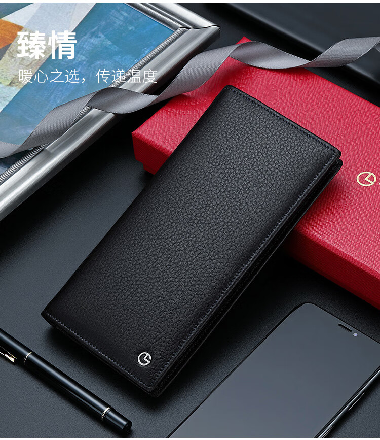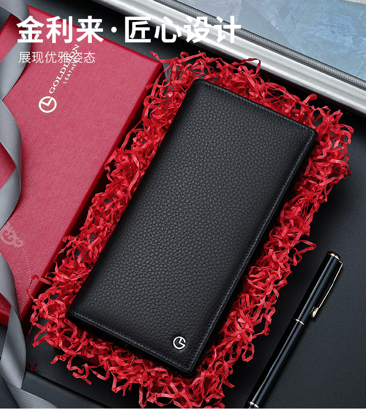 金利来(Goldlion)男士钱包礼盒头层牛皮长款两折票夹商务钱夹竖款皮夹 黑 A721001-111TA 生日礼物送爸爸老公男友