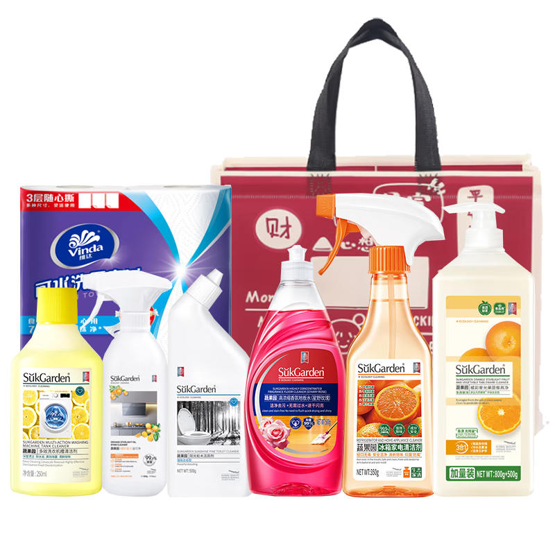 蔬果园/维达 家清厨卫七件套3.15kg+250ml+2卷(赠:便携手提福袋)
