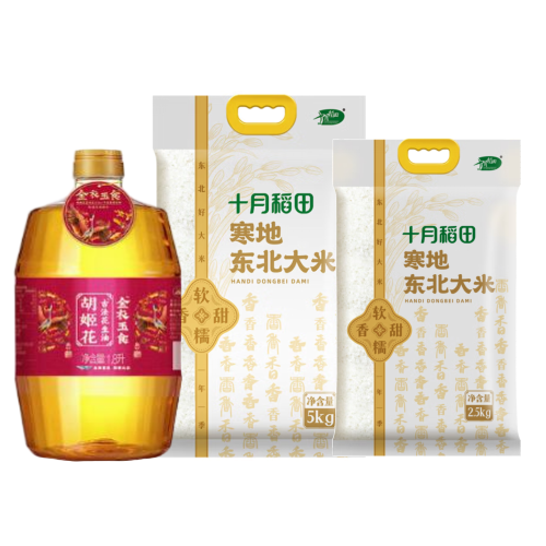 胡姬花金衣玉食古法花生油1.8L+十月稻田寒地东北大米5kg+2.5kg