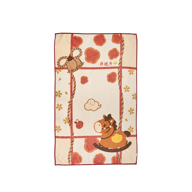 大英博物馆新年系列萌马日进斗金披肩毛毯980*1500mm
