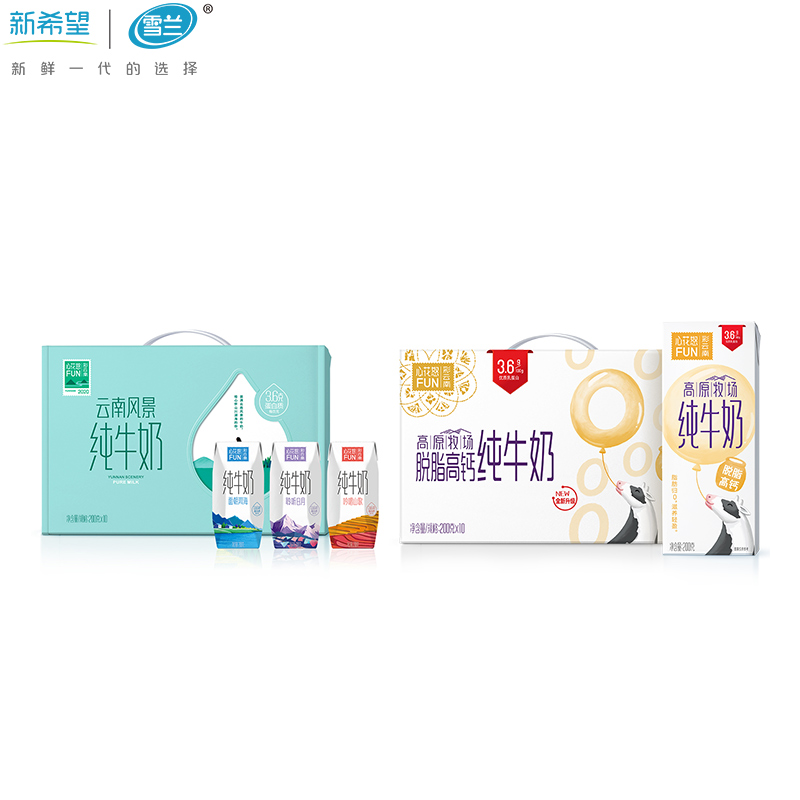 【2箱组合装】新希望 雪兰脱脂高钙+风景纯牛奶组合200g*10盒*2箱